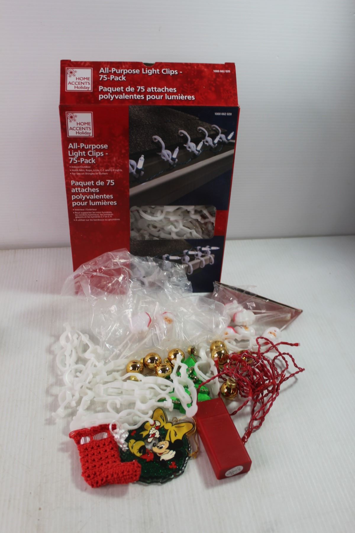 Assorted Christmas Ornaments- Light Clips, Misc.