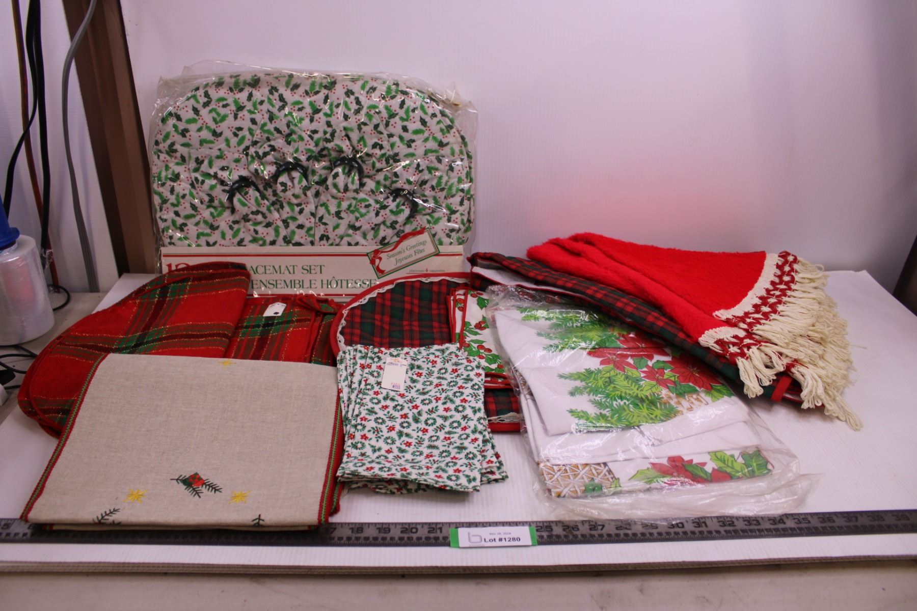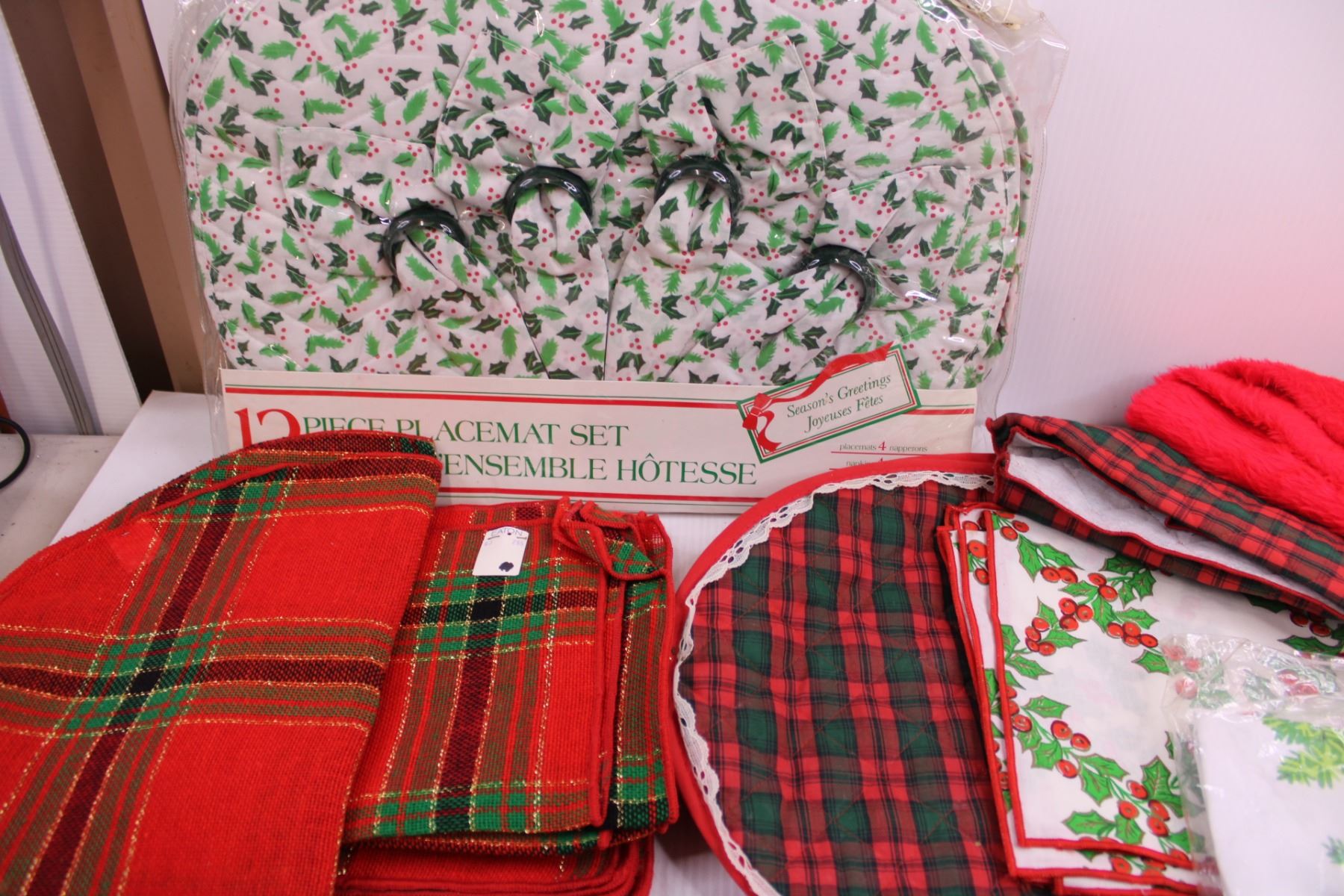 Assorted Christmas Themed Table Linens (Placemats, Table Cloths, Runners, Napkins, Tree Skirts) Many NIB