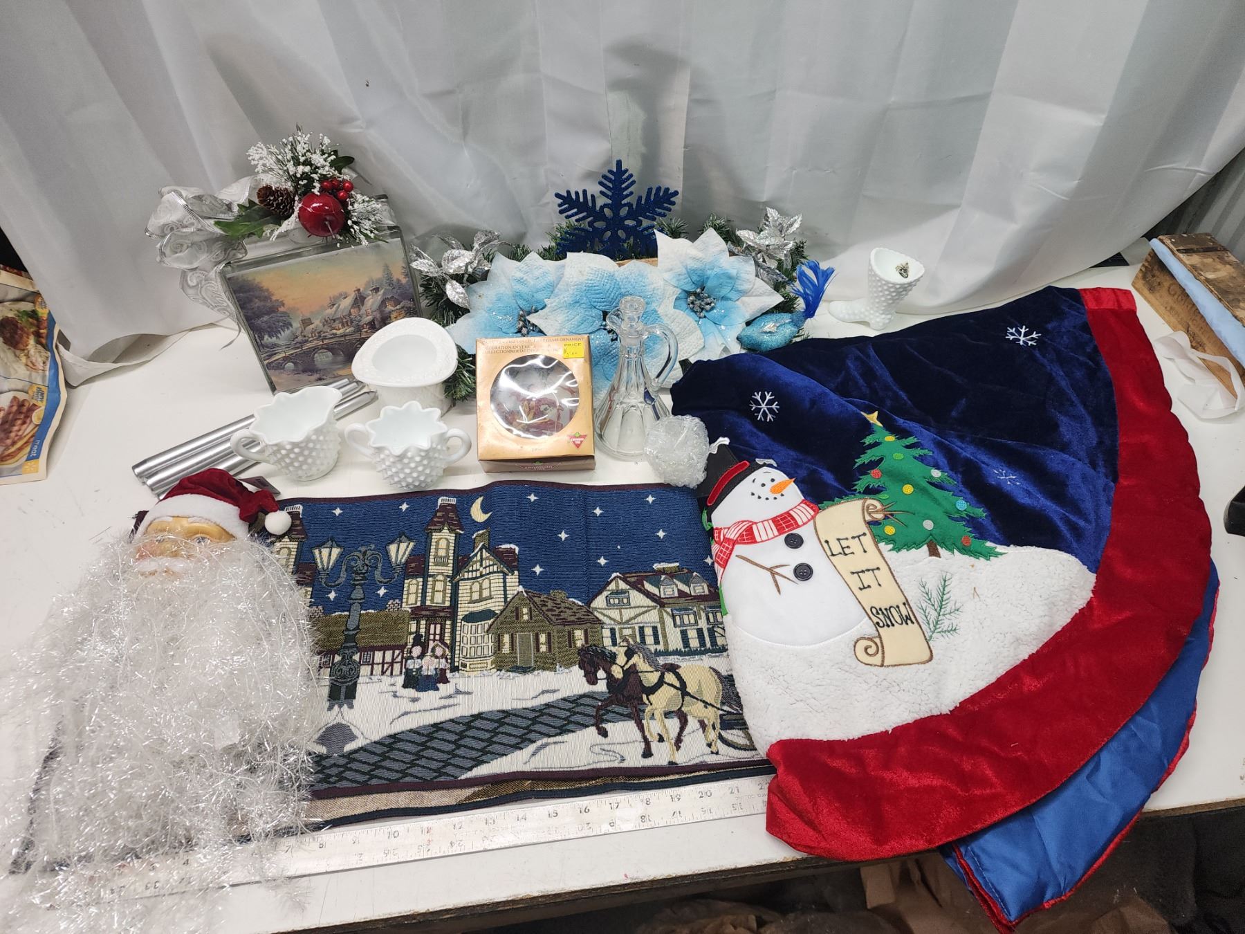 Assorted Christmas décor - table runner, tree skirt, etc.