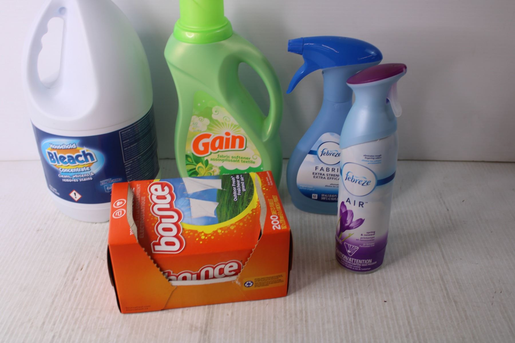 Assorted Cleaning Supplies - Bleach, Laundry Detergent
