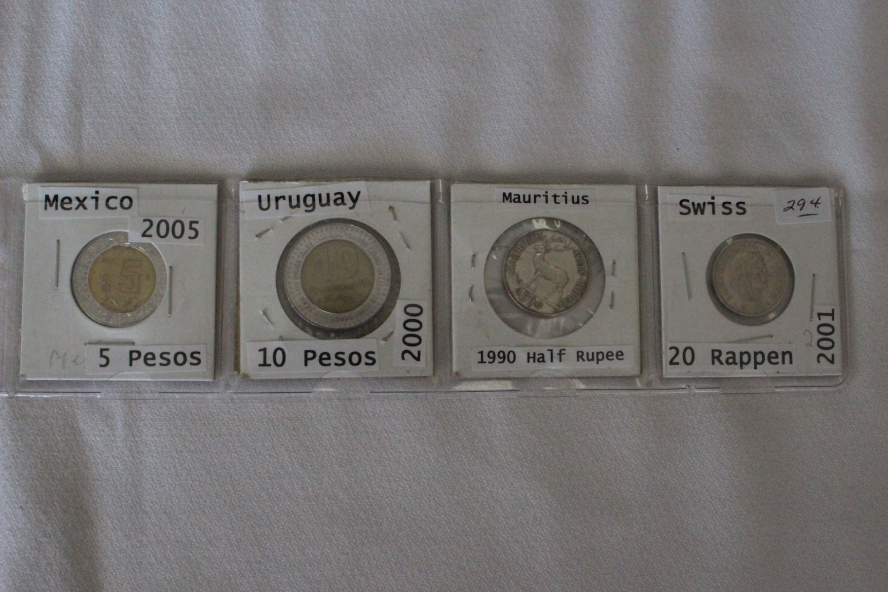 Mexico: 2005 - 5 Pesos; Uruguay: 2000 - 10 Pesos; Mauritius: 1990 Half Rupee & Swiss 20 Rappen