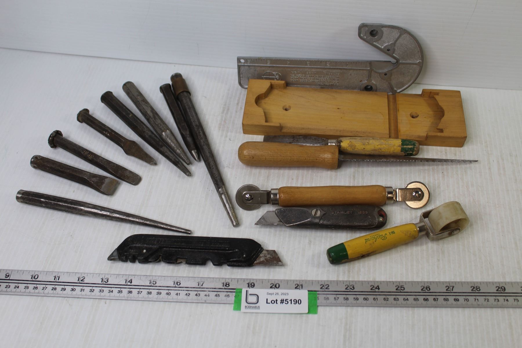 Assorted Cold Chisels & Punches - 9" Wood Plane Wall Mount - Misc. Hand Tools