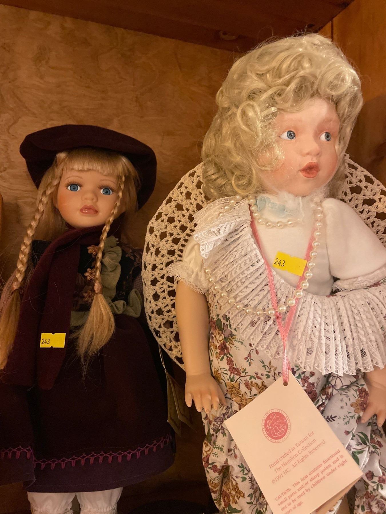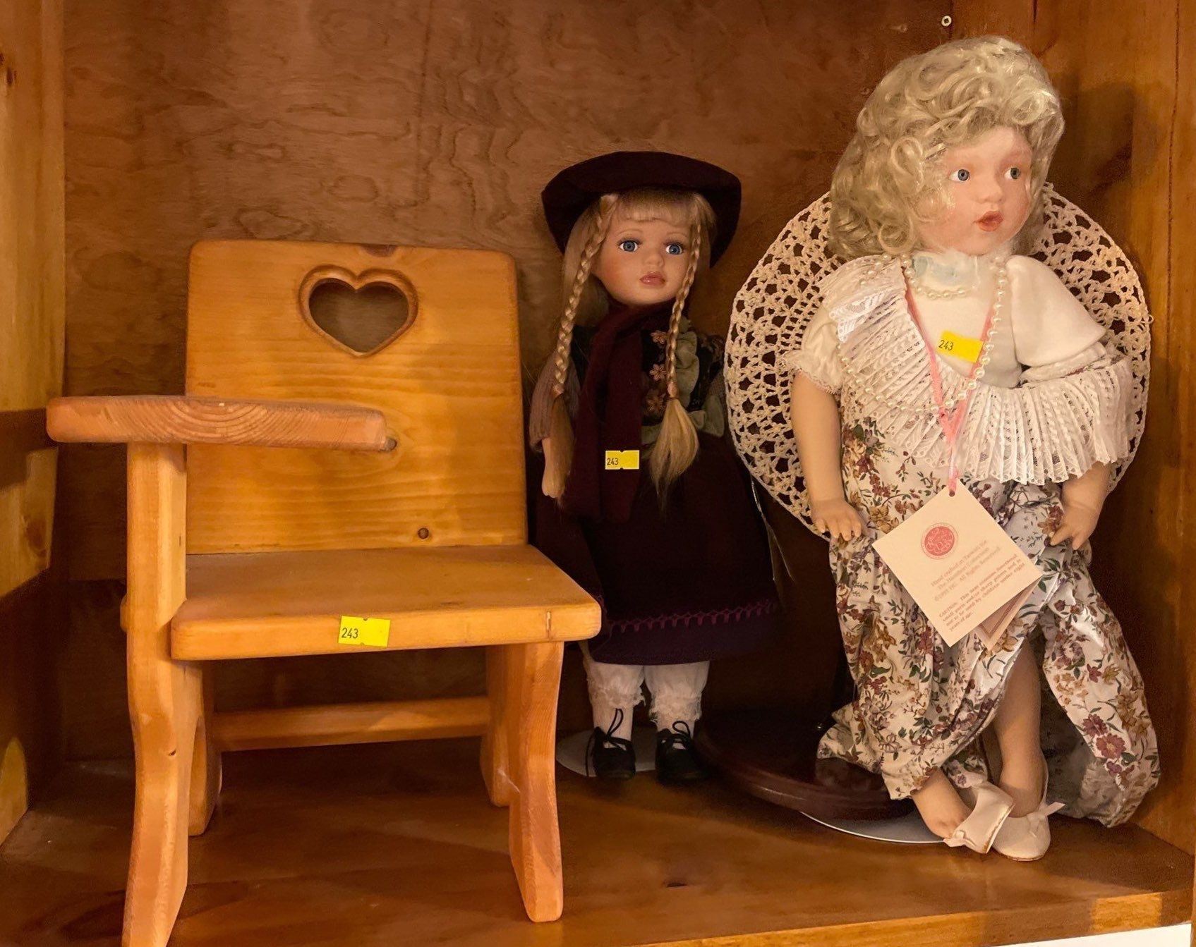 Assorted Collection Of Porcelain Dolls 18H & Wooden Doll Desk