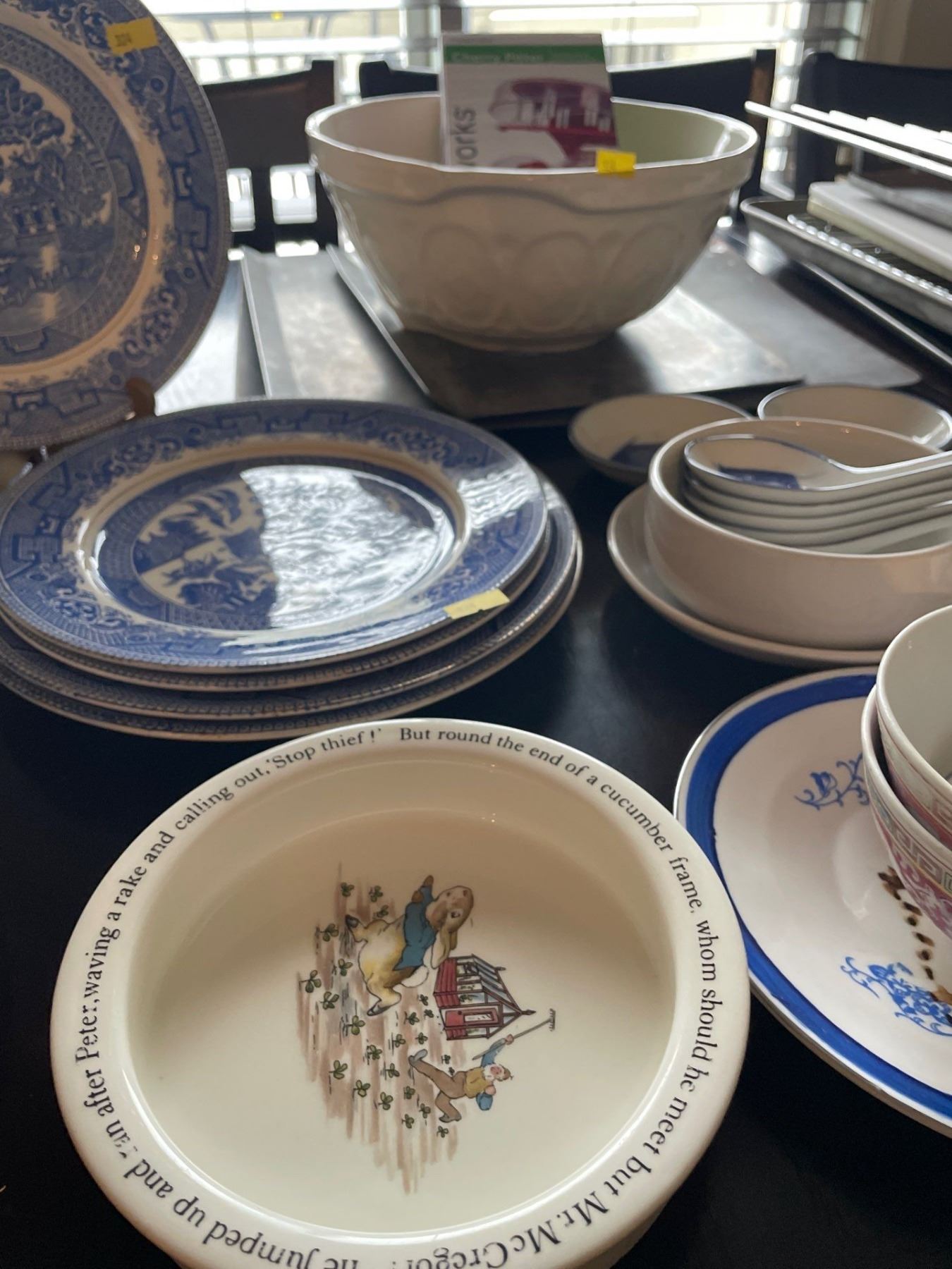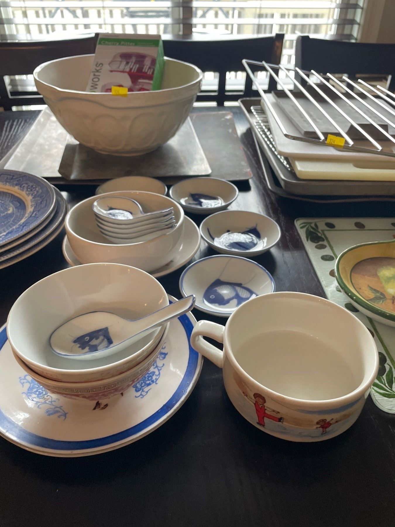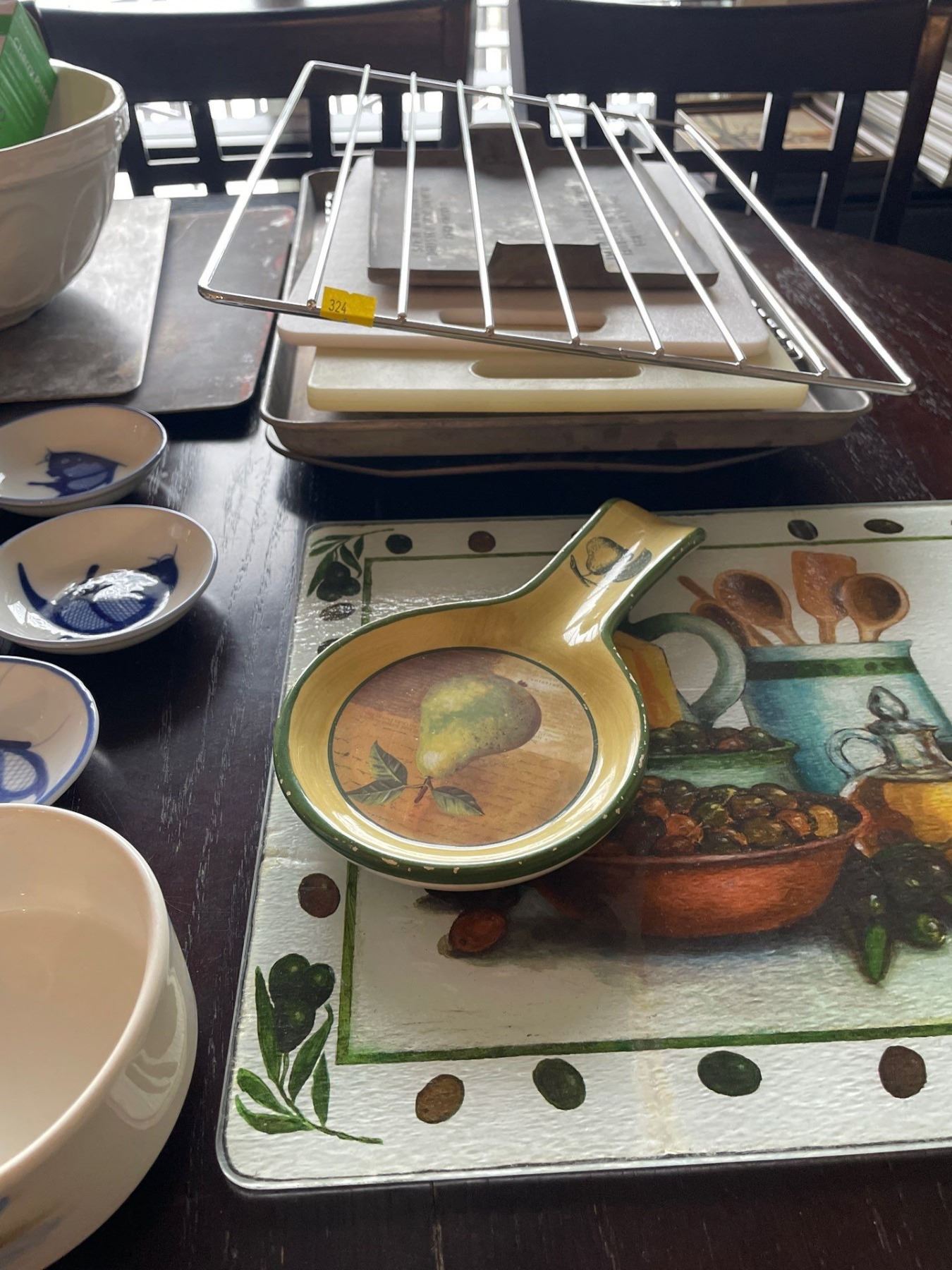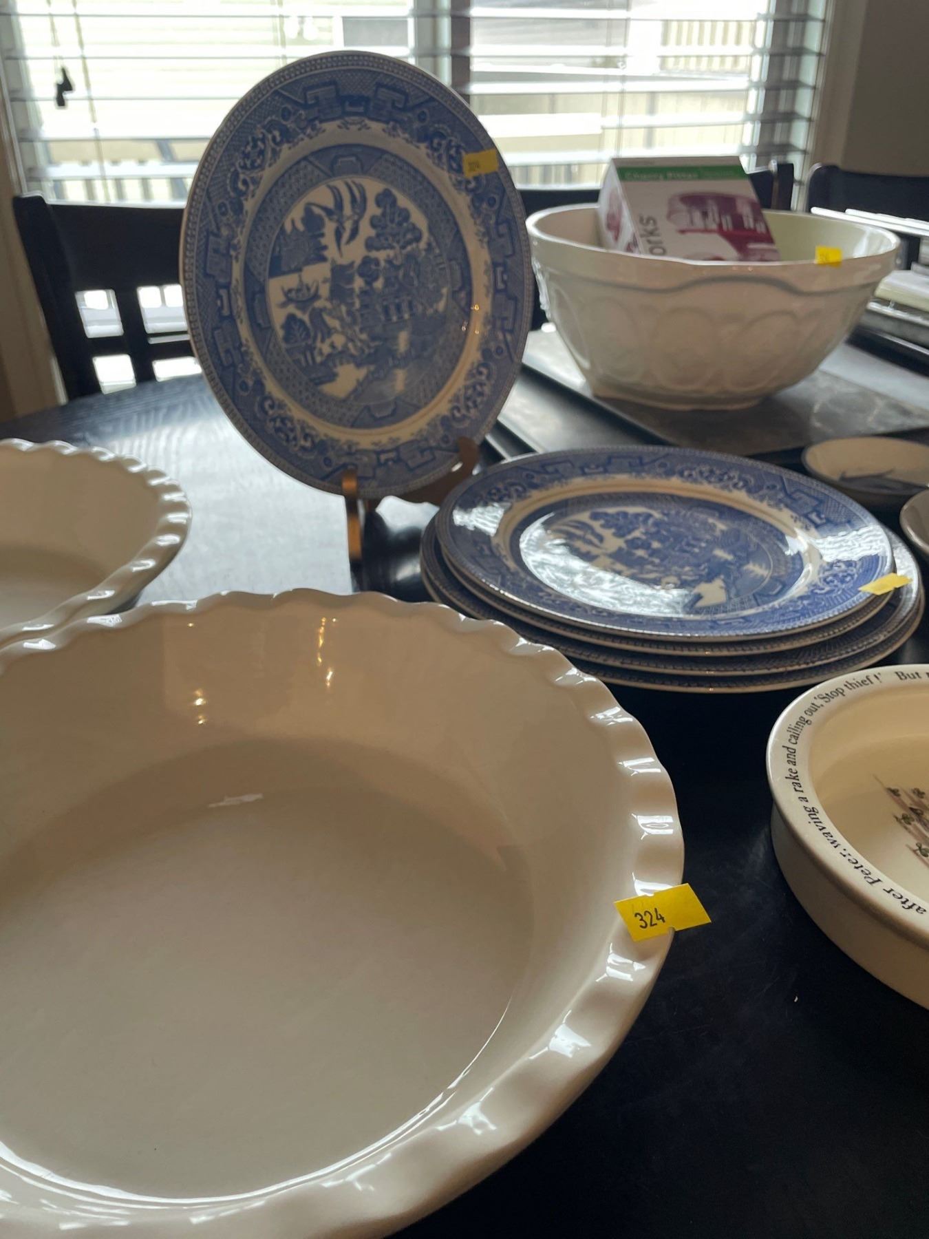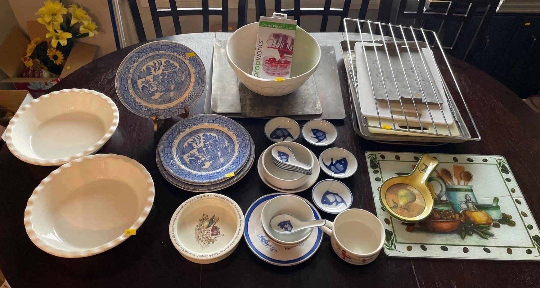 Assorted Collection of Household Items, Pie Dishes, Plates, Bowls Cutting Boards, and More