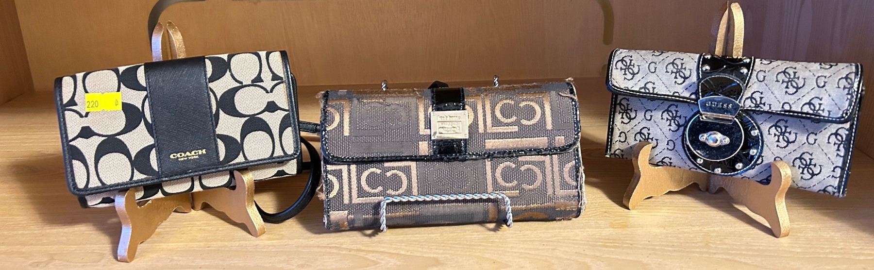 Assorted Collection of Ladies Wallets, Coach, Guess, and Liz Claibourne