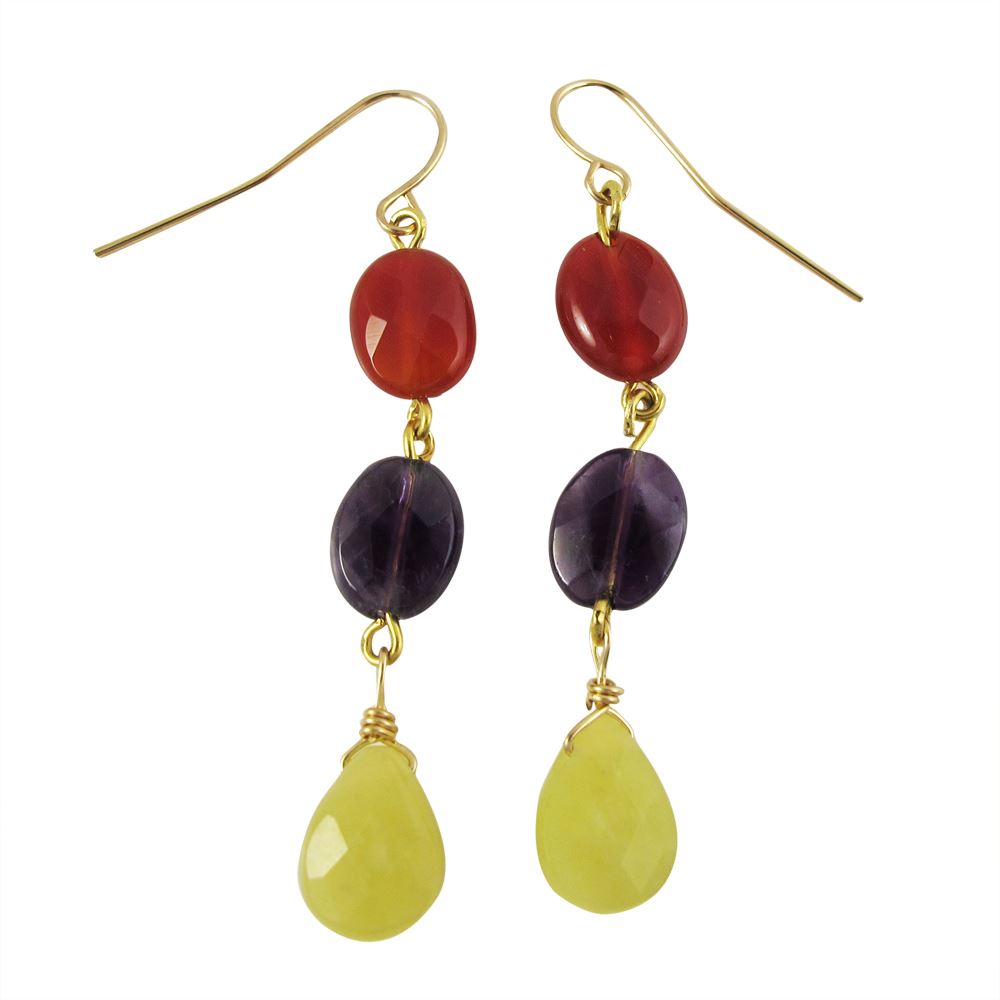 Assorted Colored Stones Gold Over Sterling Silver Fish Hook Earrings