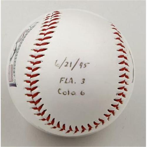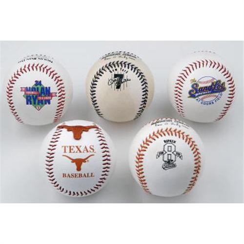 <B>Assorted Commemorative Baseballs Lot of 5.</B></I> Each of the five orbs we see here is a special commemorative baseball, custom-printed to fit a particular occasion. Lot breaks down as follows: 1) Nolan Ryan Fotoball from Nolan Ryan Day in 1993. 2) OAL (Budig) Cal Ripken 2,131 baseball. Special orange stitching. 3) University of Texas logo baseball with attached embroidered Longhorn. 4) OAL (Budig) Mickey Mantle New York baseball. Special Yankee blue stitching. 5) Coors Field Fotoball from its inaugural season. Handwritten "6/21/95, FLA. 3, COLO. 6" appears on a side panel.<BR><BR><b>Shipping:</b> Requires 3rd Party Shipping (<a target="_blank" href="http://www.heritageauctions.com/common/shipping.php">view shipping information</a>)