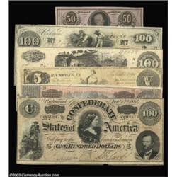 Assorted Confederate Type Notes. Included are a T36 $5 1861 (Fine-VF, CC), T39 $100 1862 (XF), T41 $