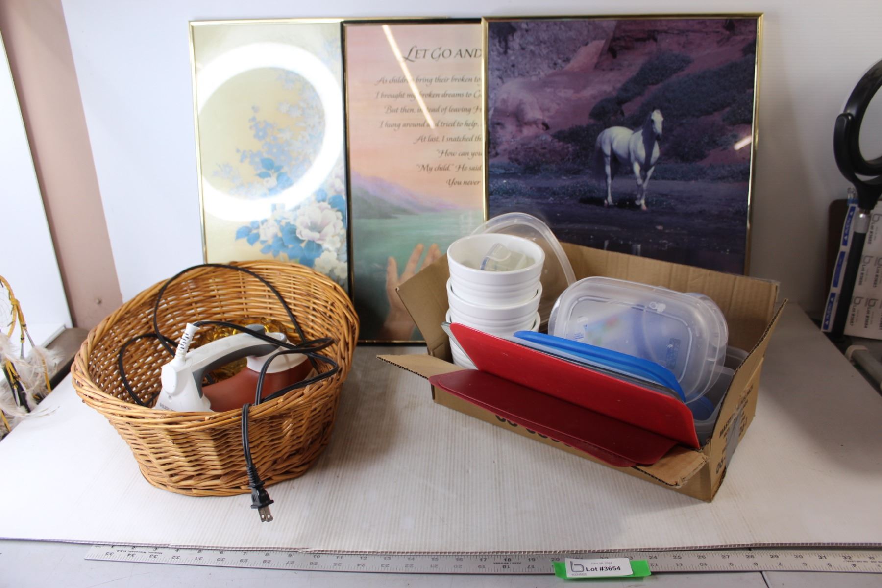 Assorted Containers, Iron, Ashtray (3) Pictures - 21" x 16 1/2"