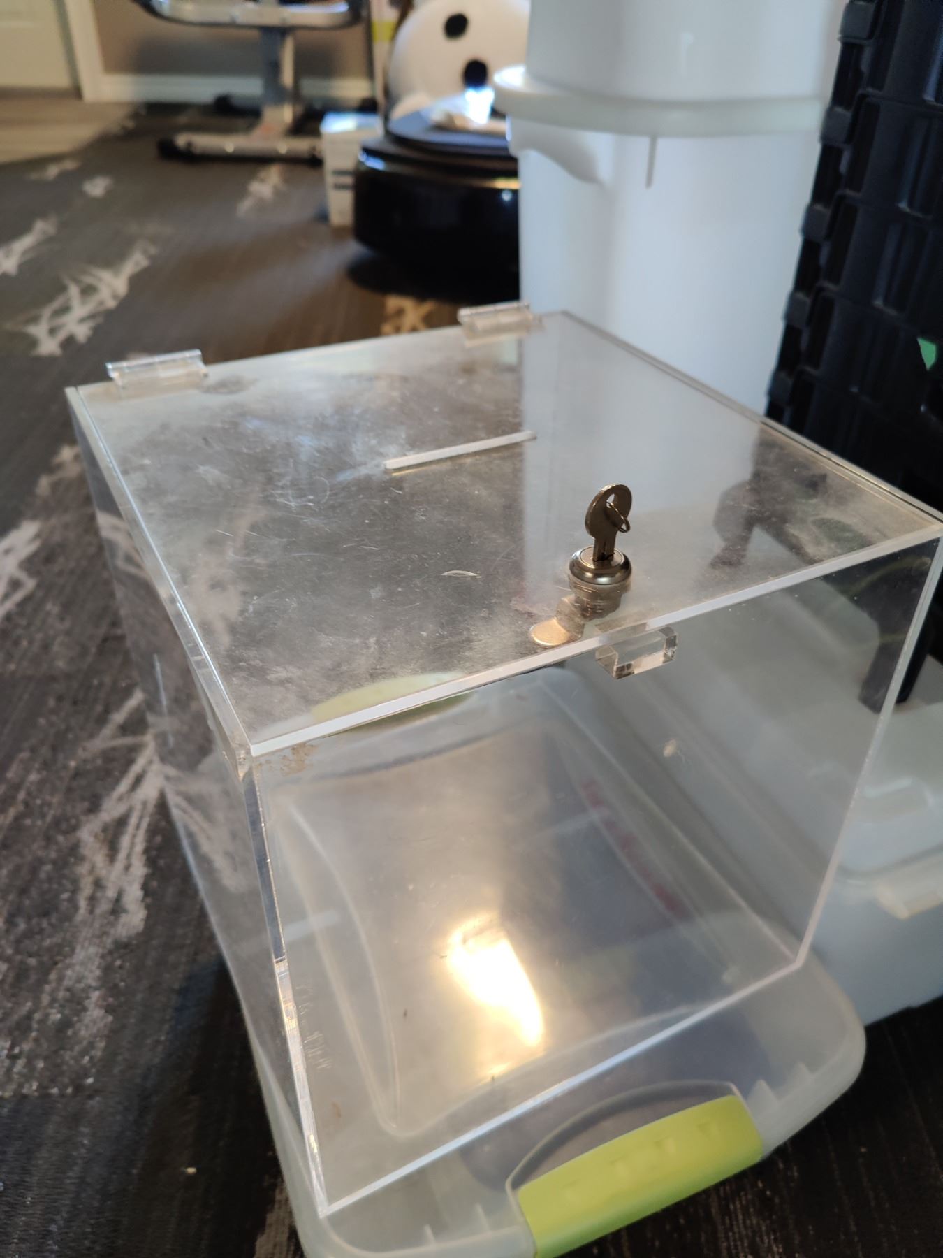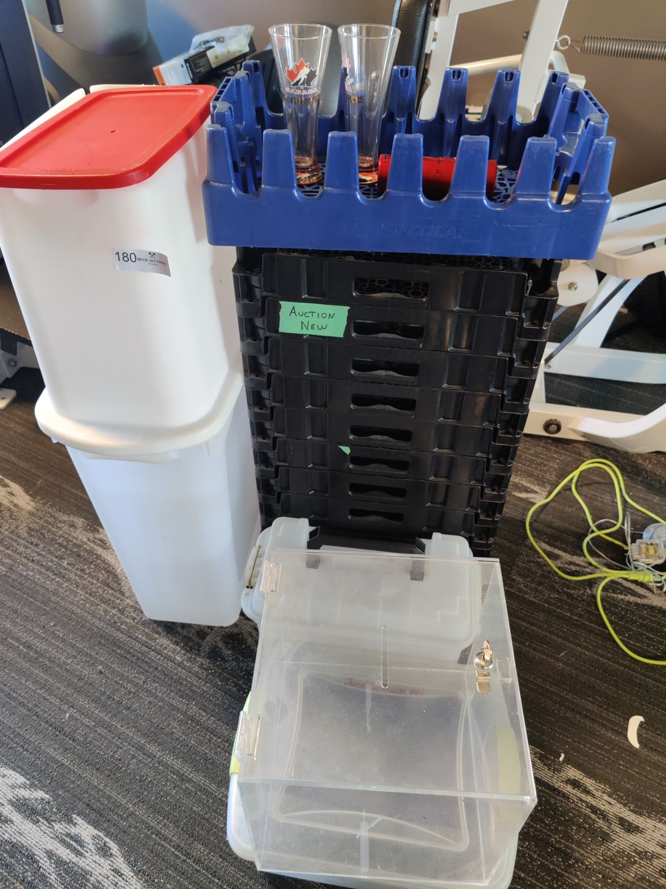 Assorted Containers, Lockable Prize Draw Bin & More
