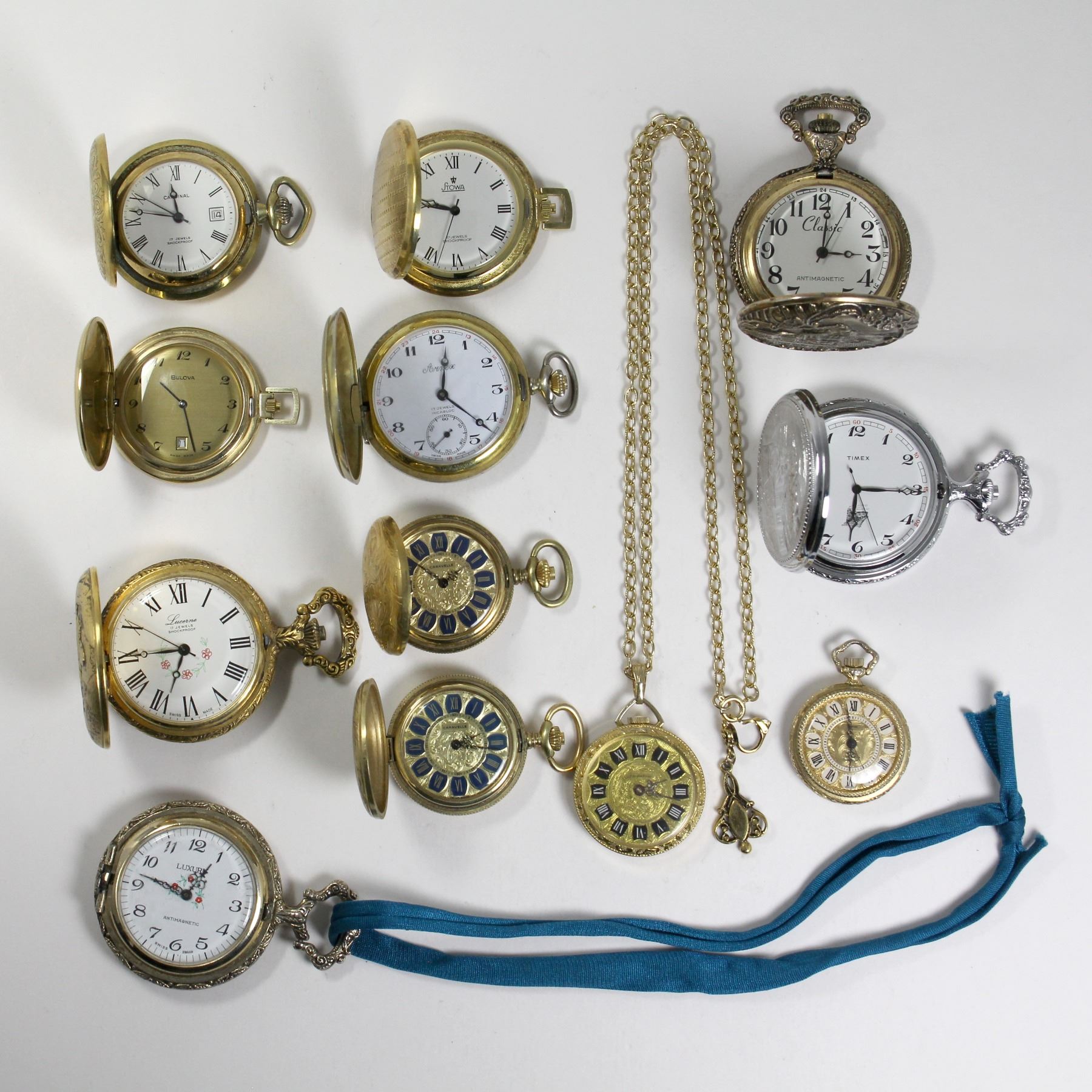 Sixteen (16). Swiss and International. 1970s-1990s. Branded, "Classic", "Arnex", "Bulova", "Timex", "VaLaire", "Stowa", "Lucerne", "ESI", etc. Cases: Base metal cases with gold and silver finishes. 34mm to 48mm case diameters. 12 are running, 4 are not running. Running watches have not been tested for timekeeping accuracy and may require adjustment. The fact that a watch has been described as "running" provides no guarantee of its ability to continue to do so.