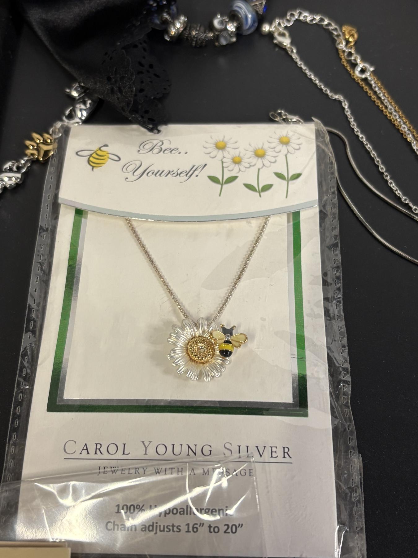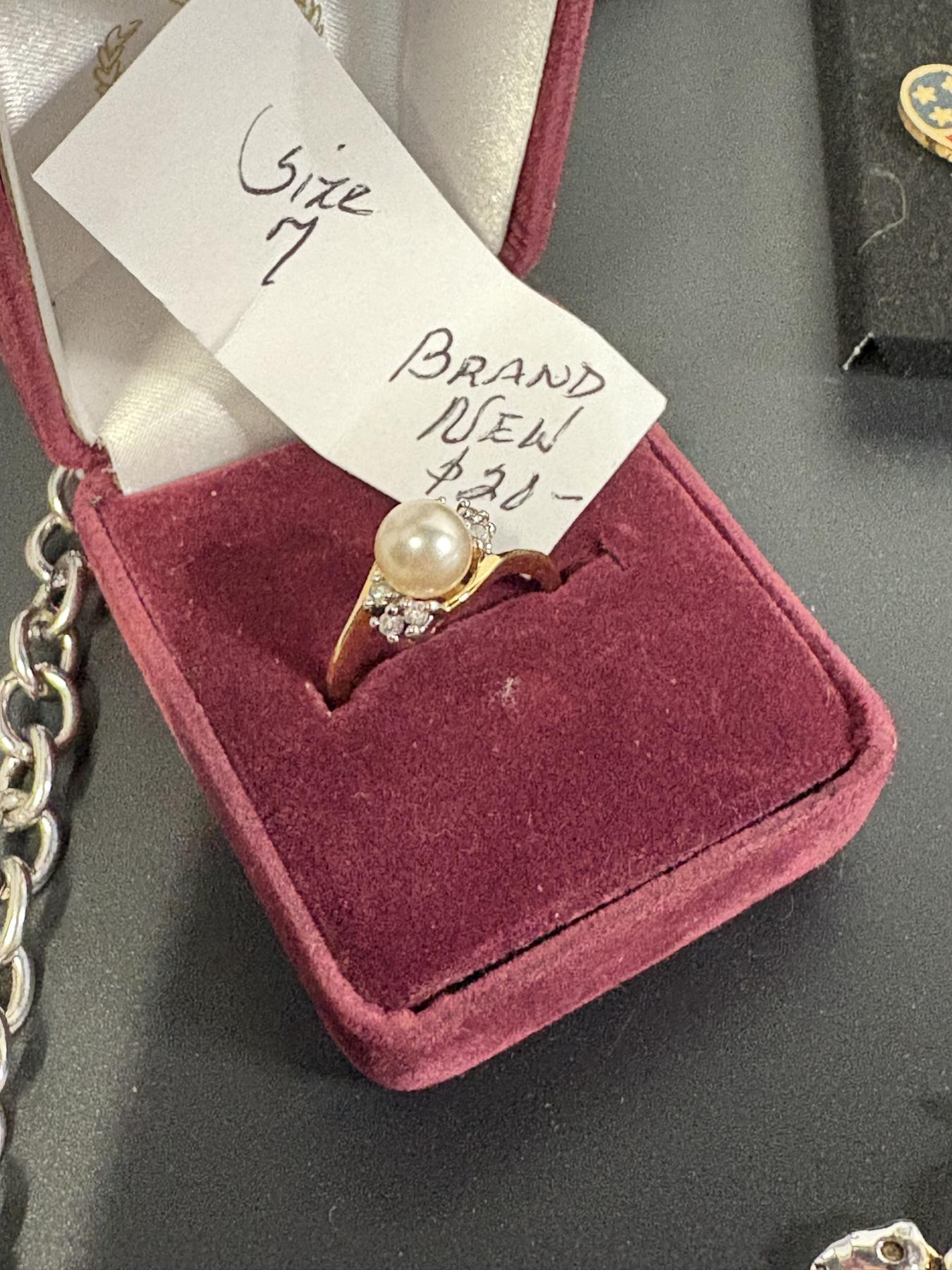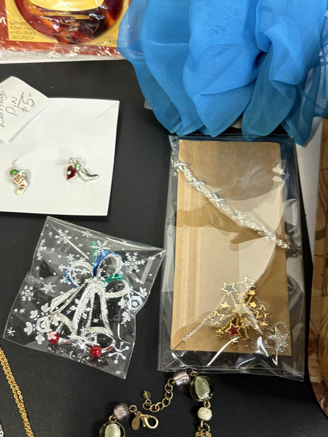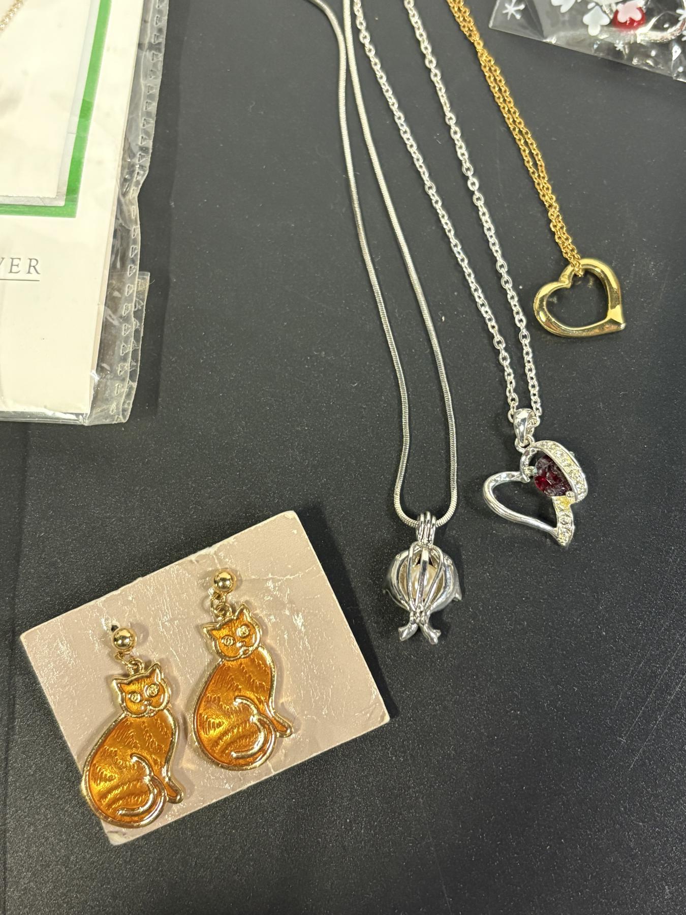 Assorted Costume Jewelry - Includes Jewelry Box & Gold Filled Earrings - Cat & Dog Bracelet - Sailboat Earrings - Stocking Earrings - Bee Necklace - Hair Pins & Bows