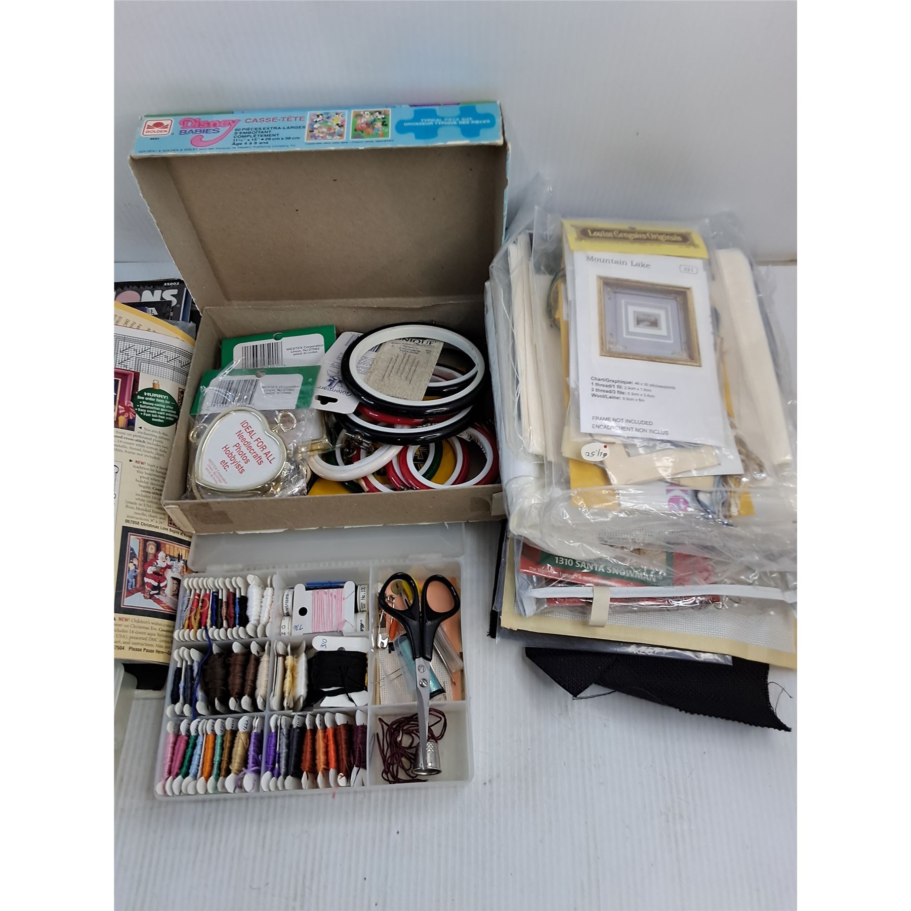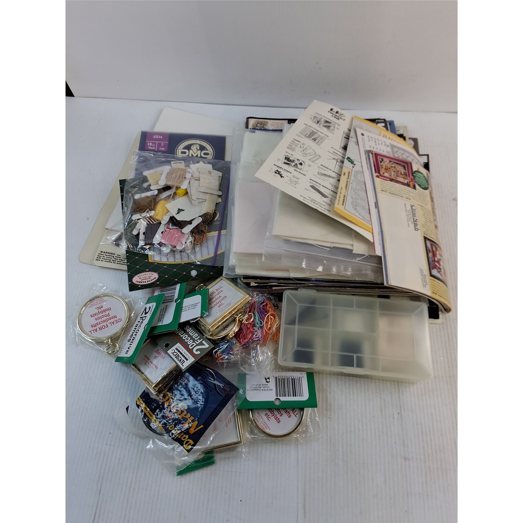 Assorted Cross Stitch Supplies- Floss, Frames, Aida Cloth, Magazines, Patterns etc