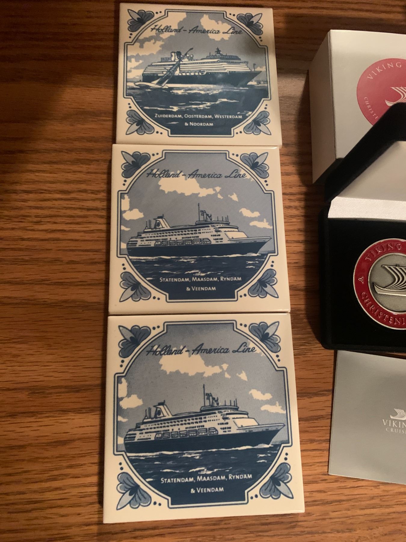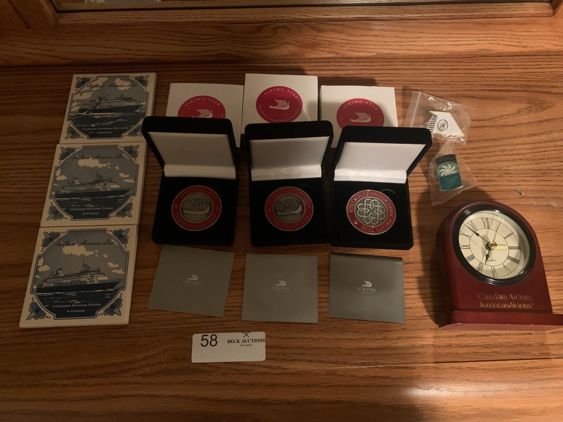 Including Holland America Line ceramic coasters, Viking Star commemorative coins, Canadian/American Airlines Clock, and more!