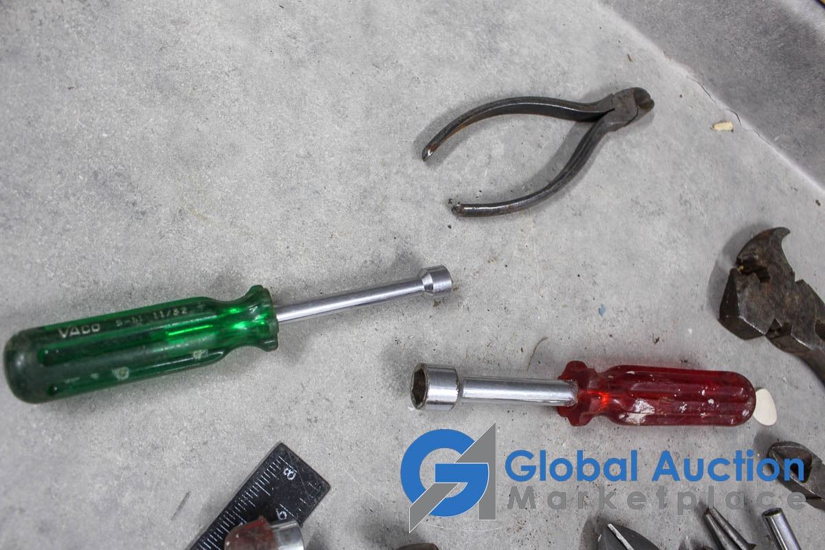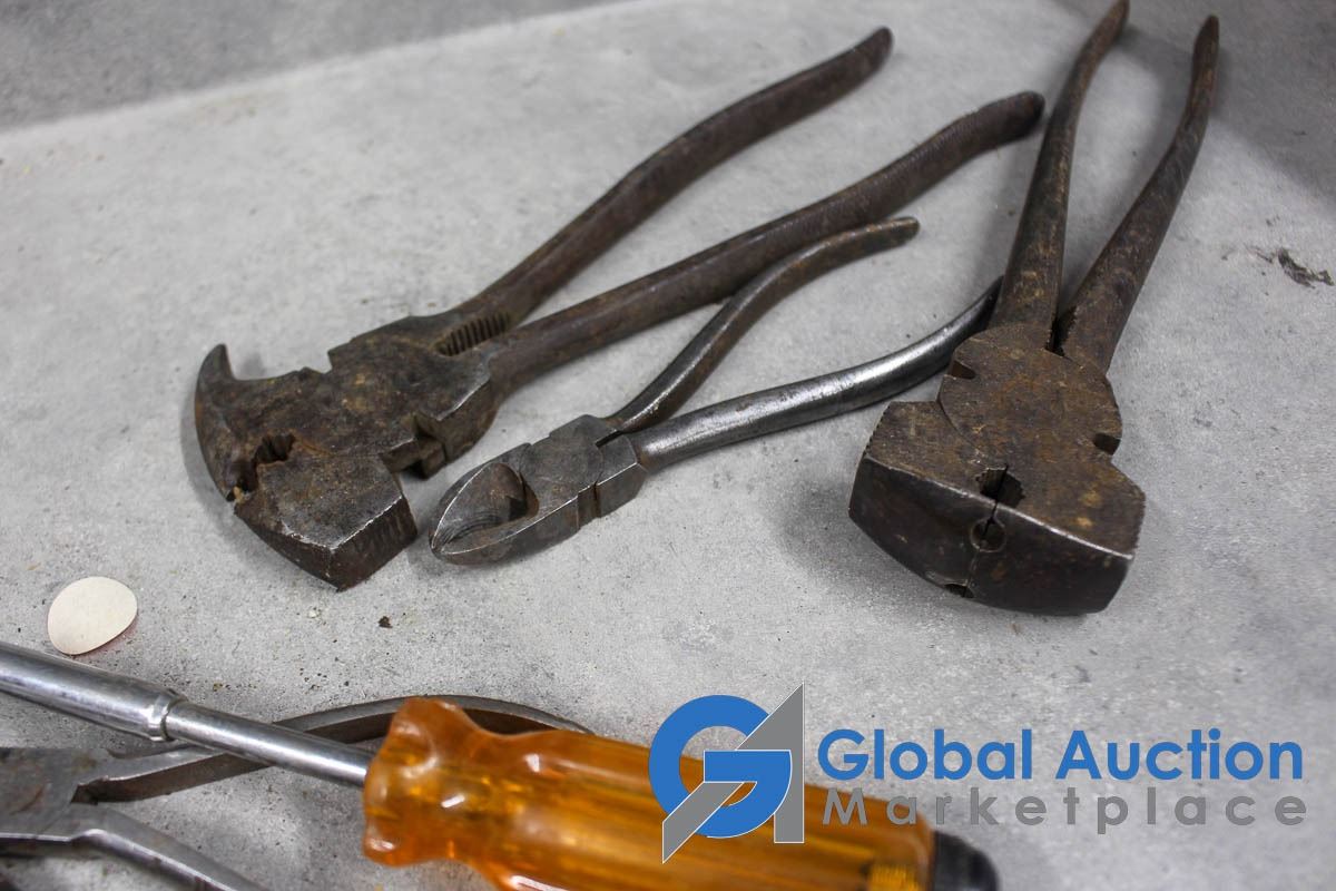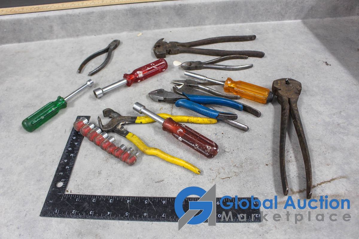 Assorted Cutting Pliers, Fencing Pliers, and Socket Drivers