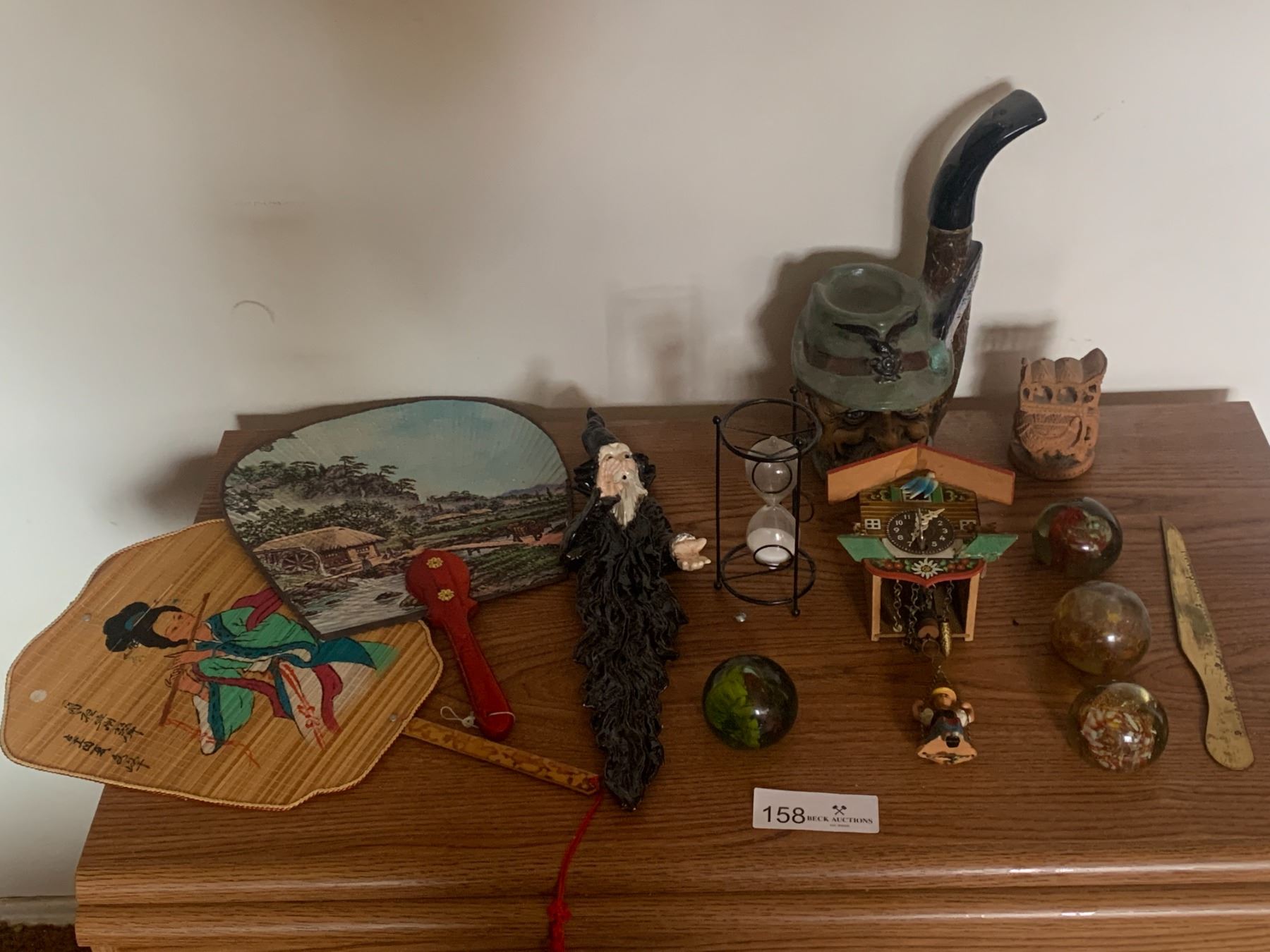Assorted Decorative Collectibles - Paper Weights, Decorative Fans, and More!