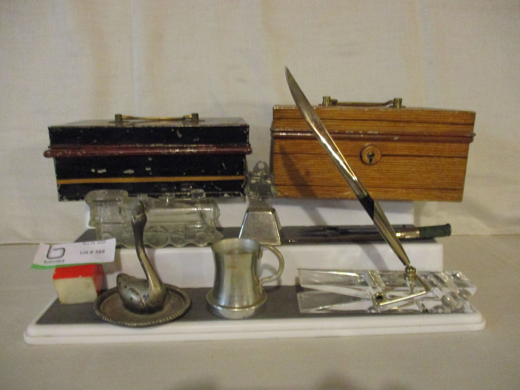 Assorted Decorative Items and 2 Metal Cash Boxes