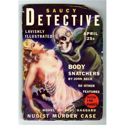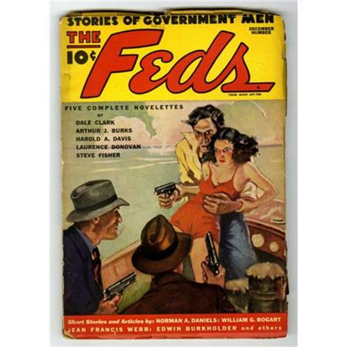 <B>Assorted Detective Pulps Group (Various Publishers, 1936-41) Condition: Average VG.</B></I> Includes the December 1936 issue <B>The Feds</B></I>, April 1937 issue of <B>Saucy Detective </B></I>(Norm Saunders cover, Bookery's lists as "scarce to rare," GD, severe mouse chew to top right corner), July 1941 issue of <B>Red Hood Detective Stories </B></I>(only issue, two small tape repairs to spine), February 1936 issue of <B>Public Enemy</B></I>, February 1937 issue (first issue) of <B>Sure-Fire Detective</B></I>, and the July 1941 issue of <B>The Angel Detective </B></I>(only issue, GD/VG). Approximate Bookery's Guide to Pulps value for group = $500.<BR><BR><b>Shipping:</b> Comics - Unslabbed (<a target="_blank" href="http://www.heritageauctions.com/common/shipping.php">view shipping information</a>)