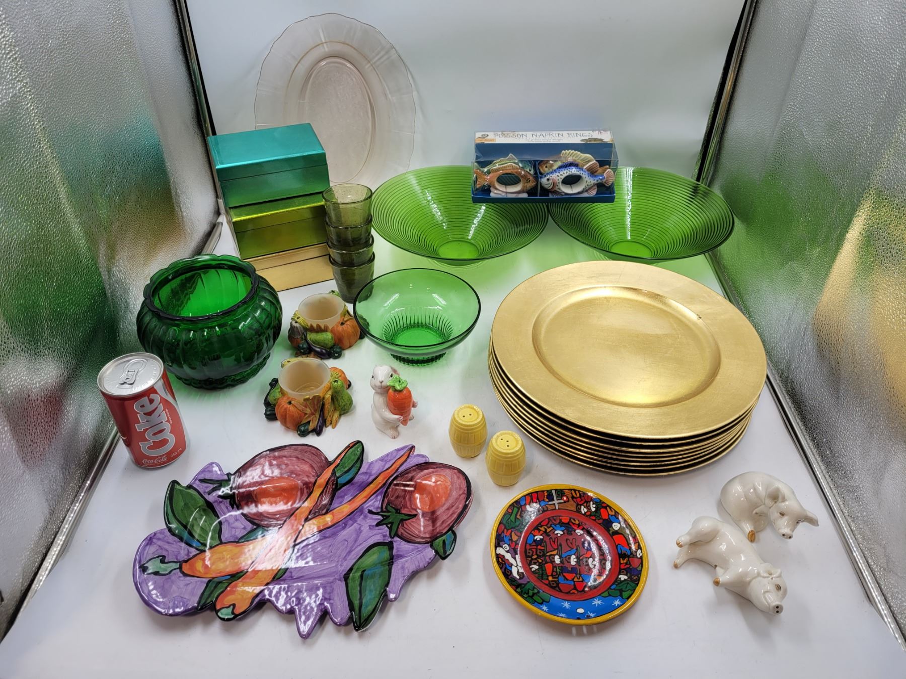 Assorted Dishes, Napkin Holder, and Salt/Pepper Shakers