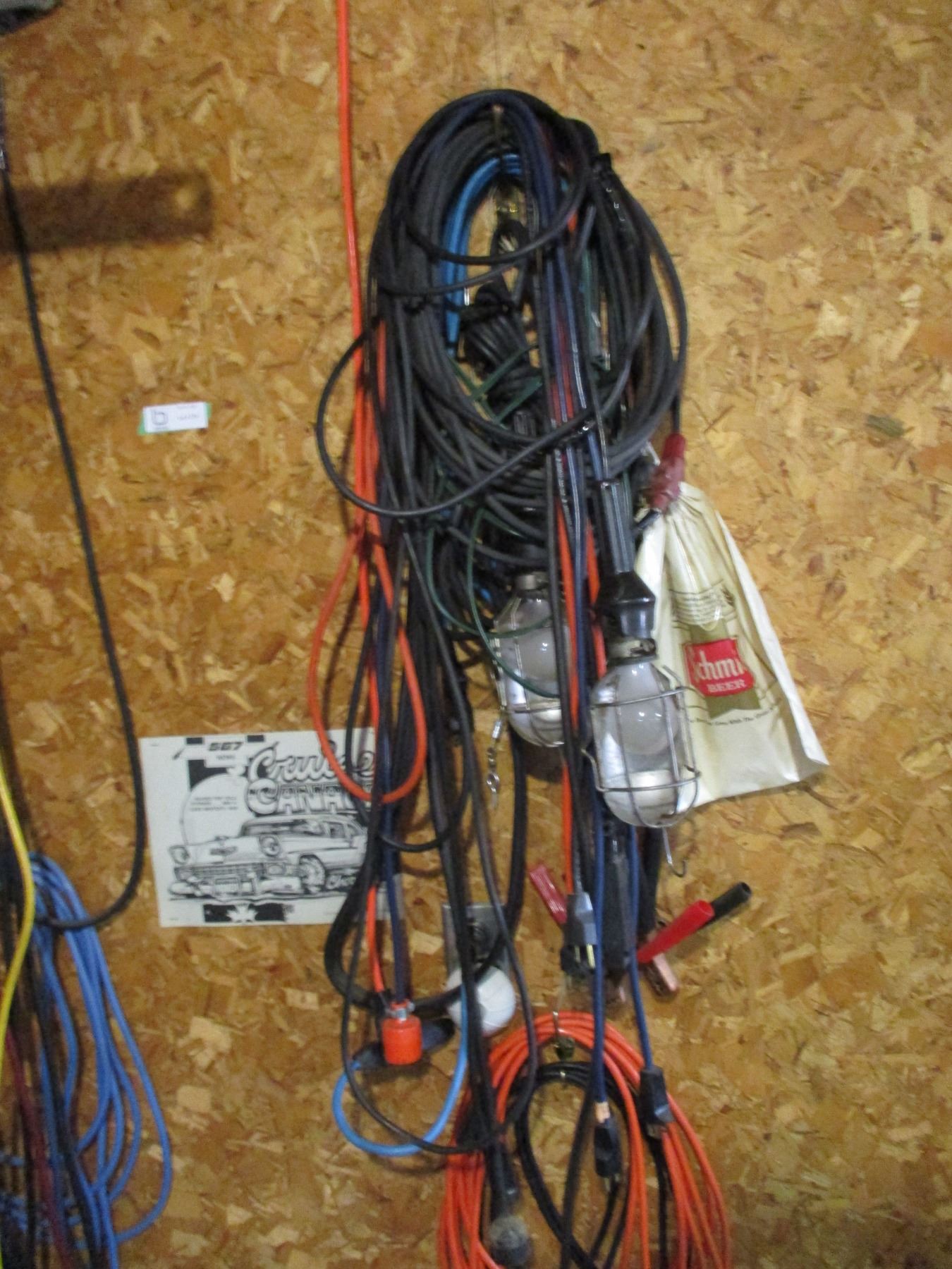 Assorted Electrical Cords, Jumper Cables and Trouble Lights