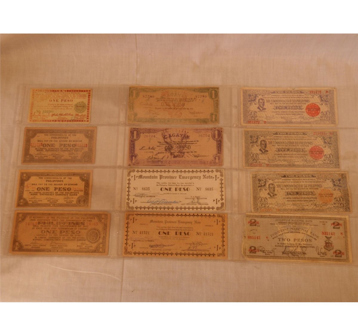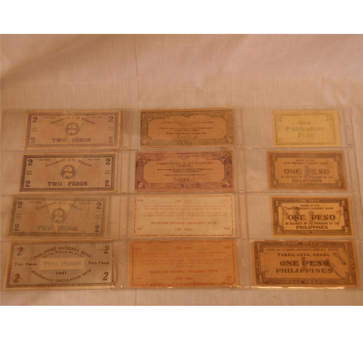 Total of 12 Philippine Emergency Bank Notes. Ranging from 1 Peso to 2 Pesos. In 1942, the Japanese occupiers introduced notes for use in the Philippines. Emergency circulating notes (also termed "guerrilla pesos") were also issued by banks and local governments, using crude inks and materials, which were redeemable in silver pesos after the end of the war. The Japanese-sponsored Second Philippine Republic under José P. Laurel outlawed possession of guerrilla currency and declared a monopoly on the issuance of money and anyone found to possess guerrilla notes could be arrested. (No longer a law, you will not be arrested for purchasing or owning these notes)