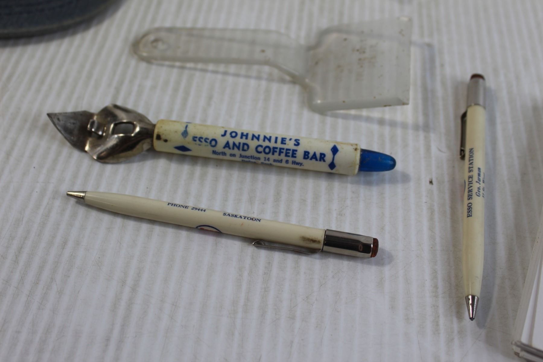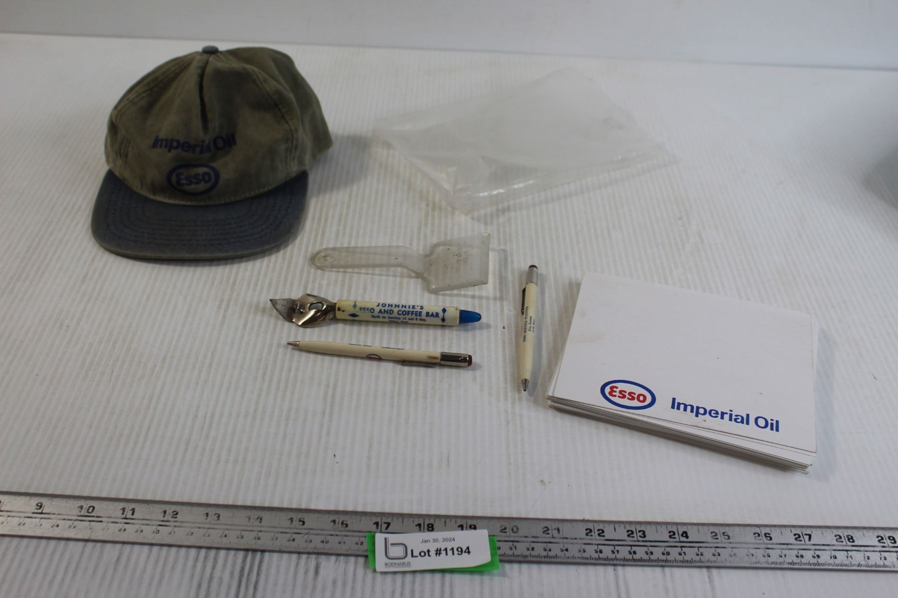 Assorted Esso Items - Hat, Papers, Pen, Bottle Opener