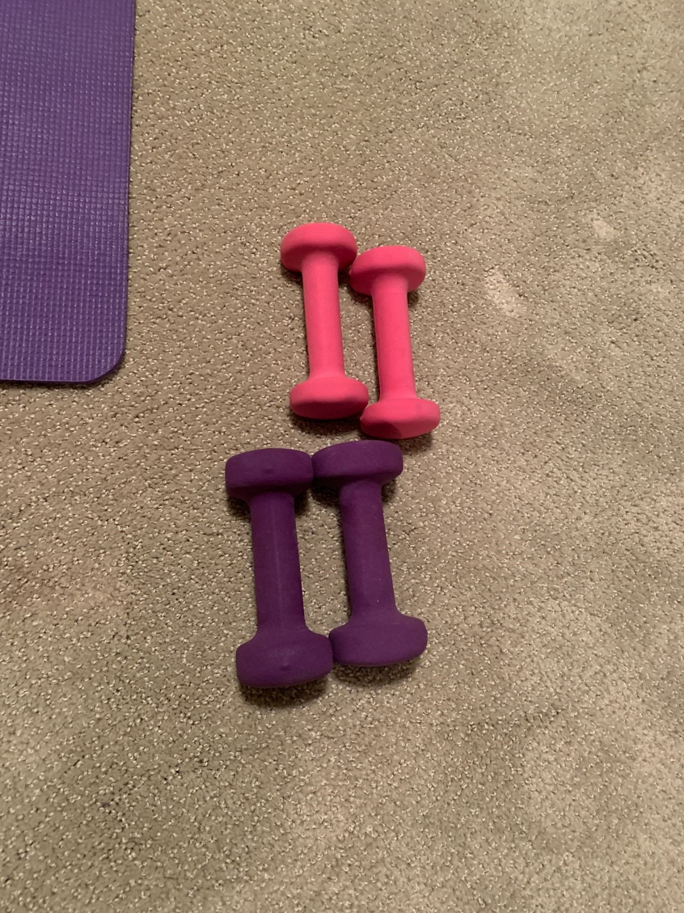Including Yoga Mat, ABS Ball (needs inflation), and Sun Ancon Therapeutic Massager, and 2 x pairs of dumbbells