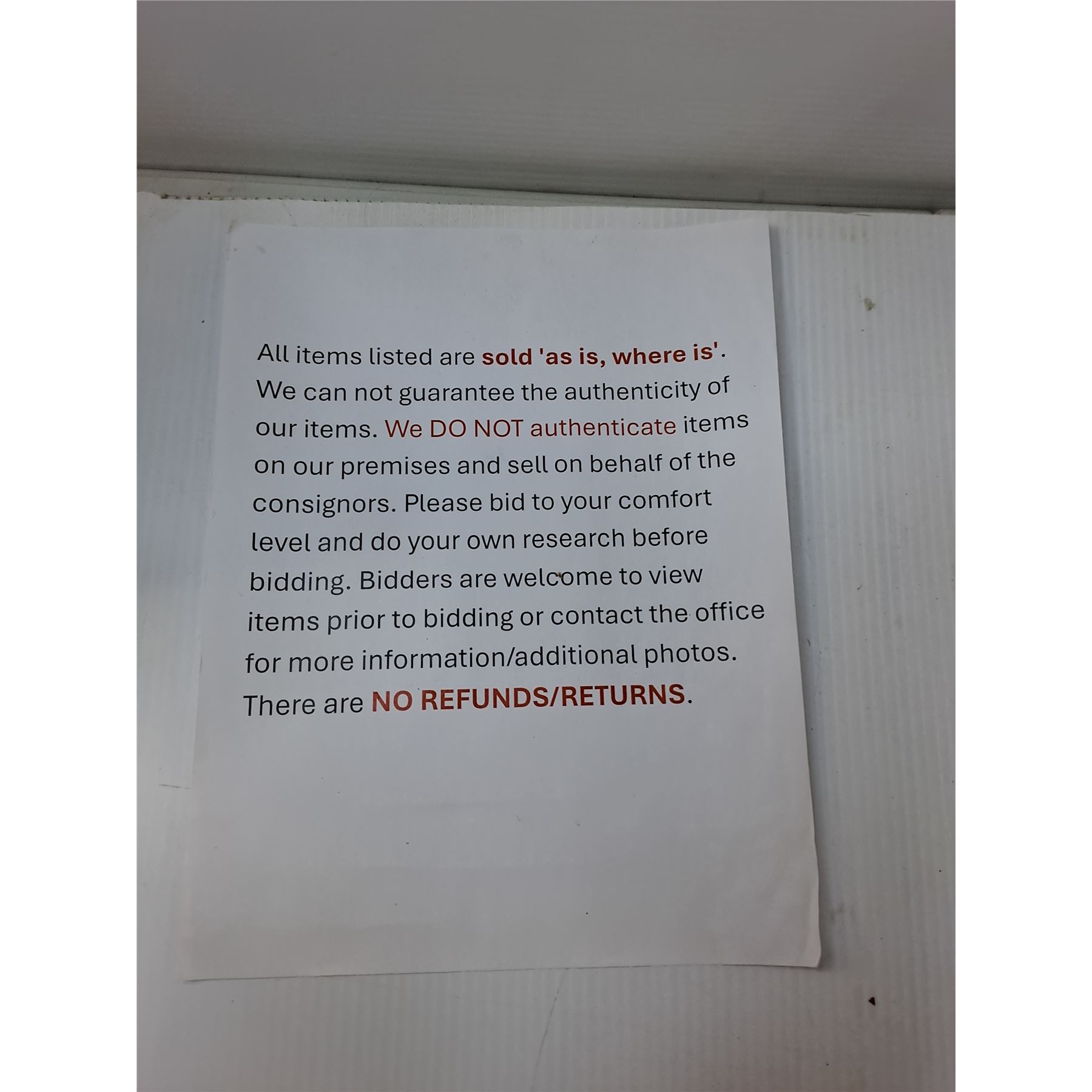 All advertising is a GUIDE ONLY. Buyers must satisfy themselves to the condition, identity and authenticity prior to bidding on an item and shall not make objections after the sale.