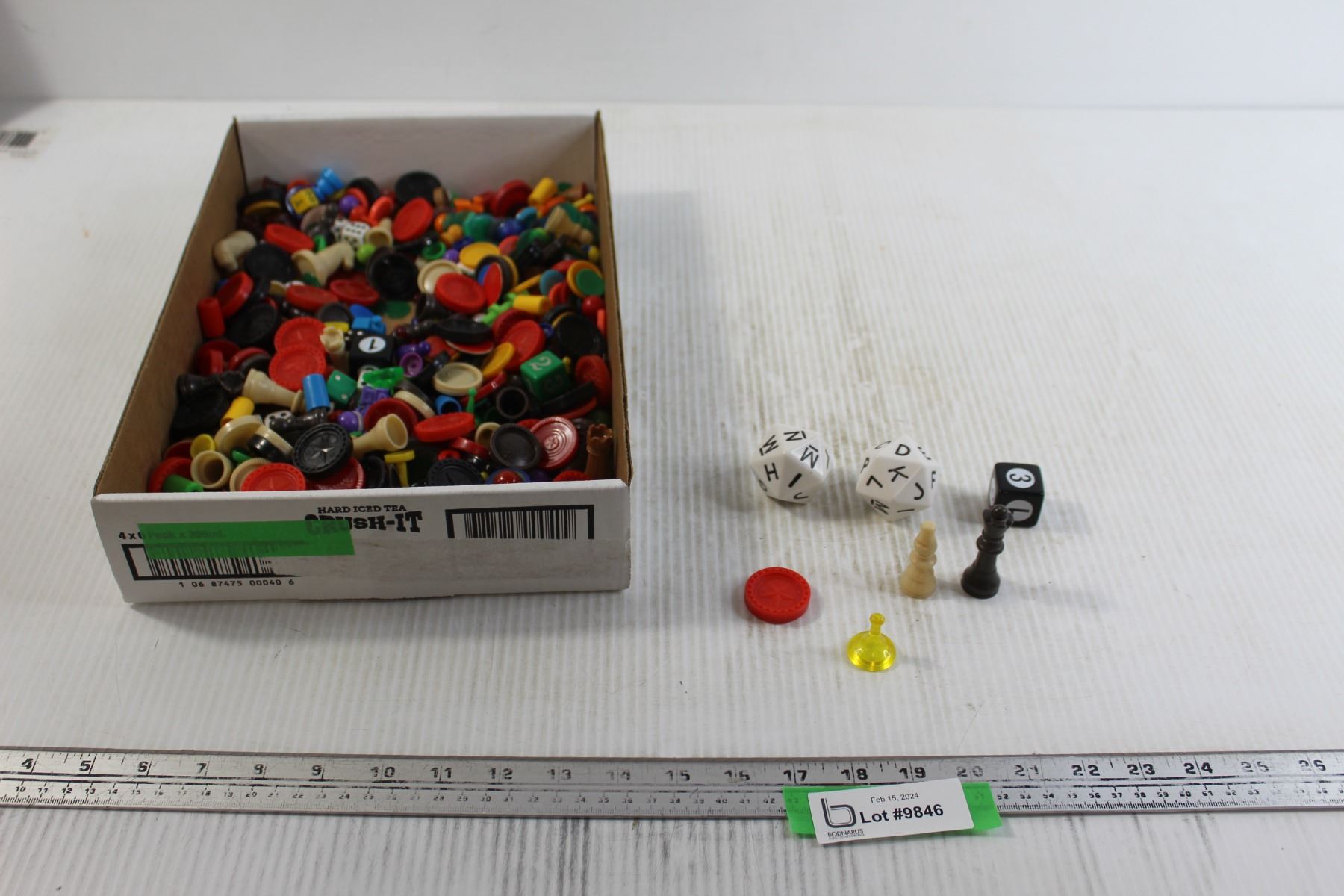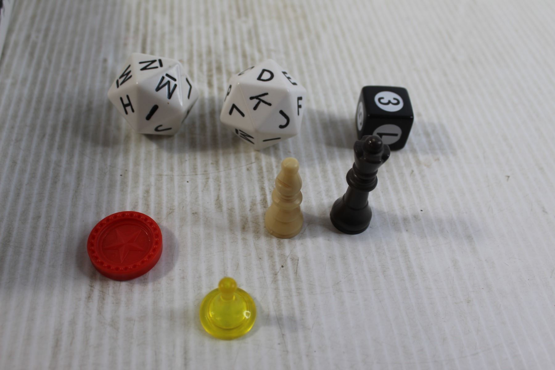 Assorted Game Pieces - Chess Pieces, Letter Dice
