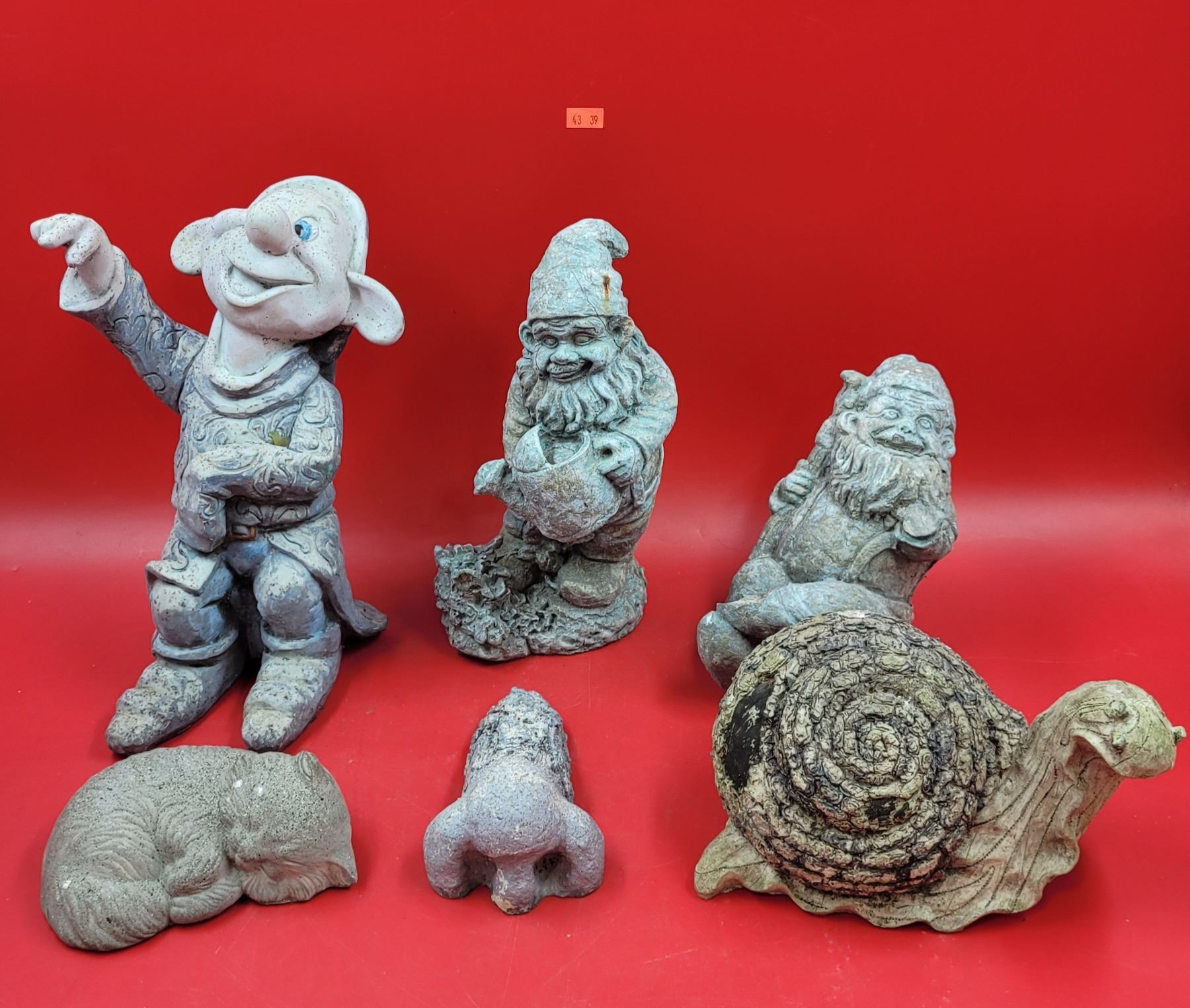 Assorted Garden Decor w/ Gnomes, Dopey, Snail, & More