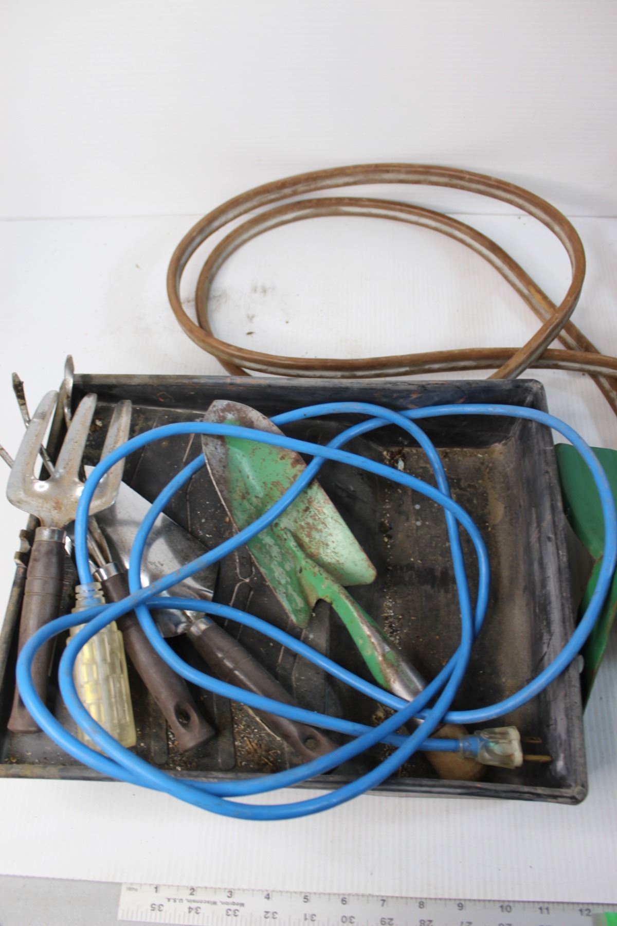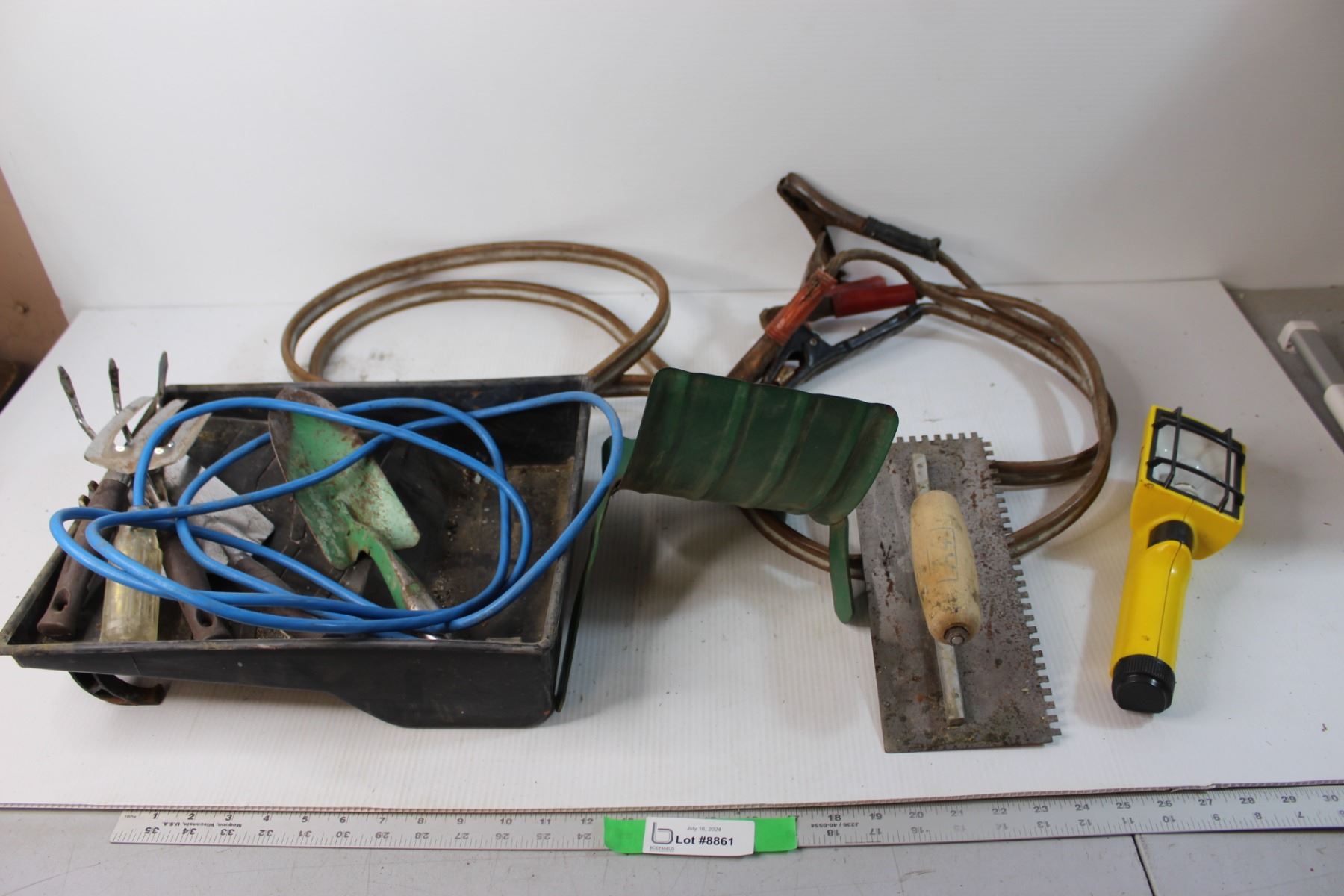 Assorted Garden Tools, Jumping Cable and Paint Tray
