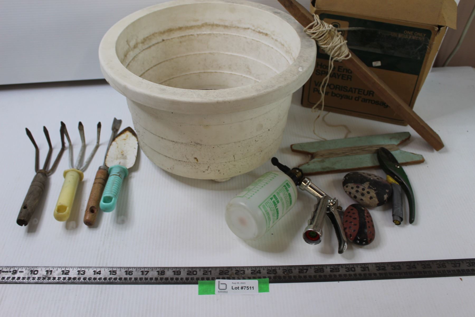 Assorted Gardening Supplies including a Hose End Sprayer