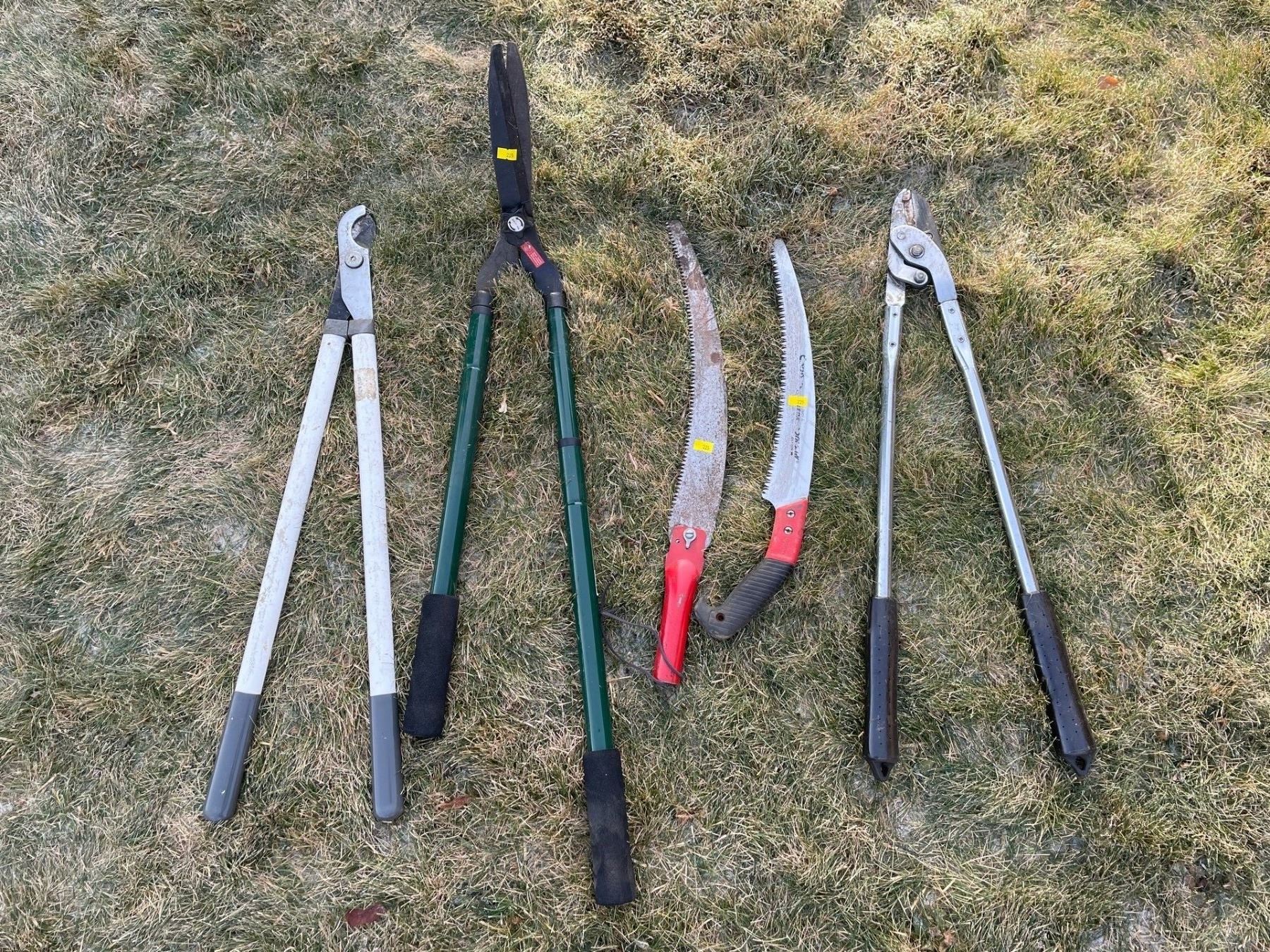 Assorted Gardening Tools - 2 Pruning Saws, 2 Lopers, & Hedge Trimmer