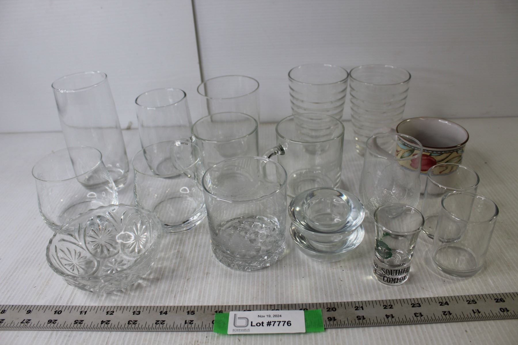 Assorted Glass Ware, Candle Holders, Coffee Mug