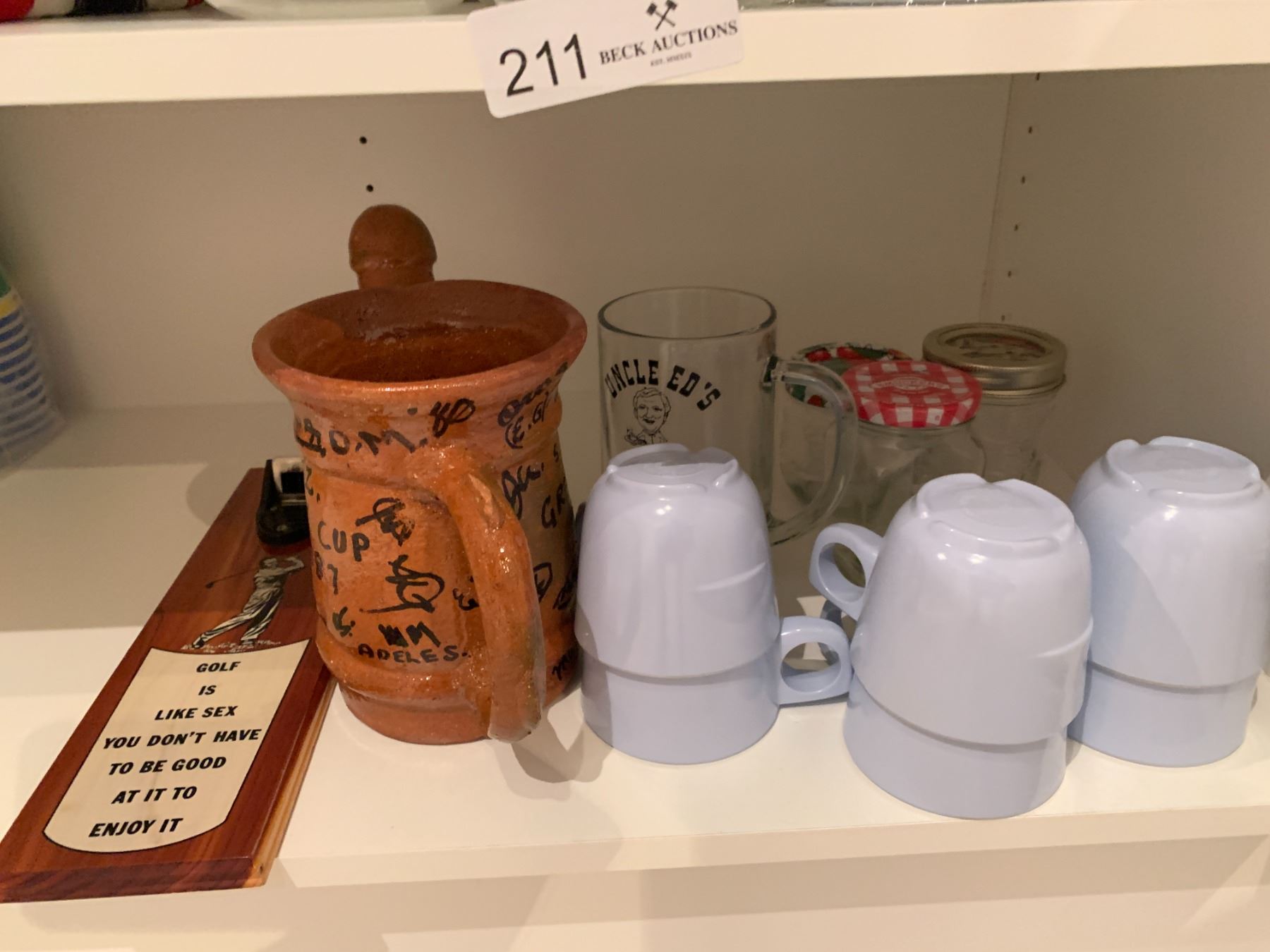 Assorted Glassware, Coffee Cups, Phallic Teapot (See Images) & Wall-Mounted Bottle Opener
