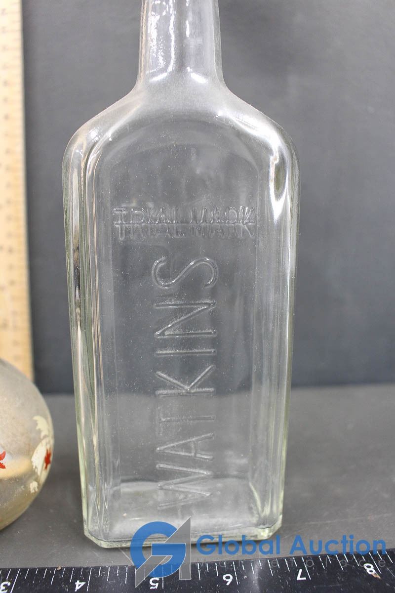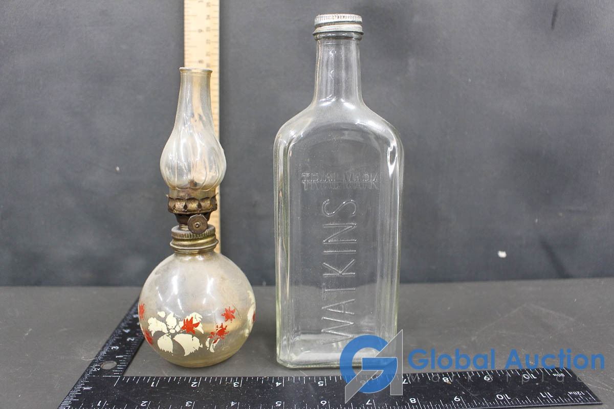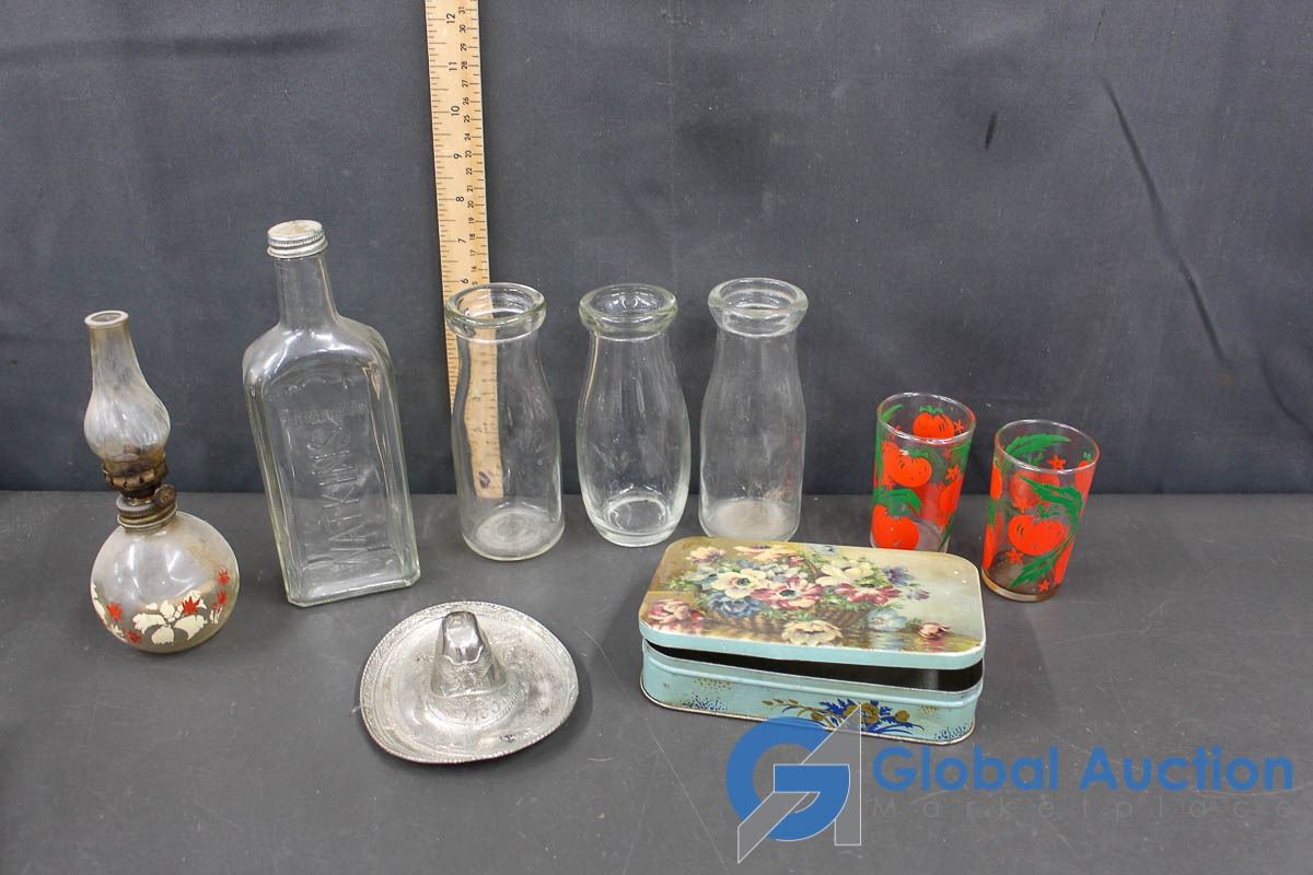 Watkin's, Glasses, Mini Oil Lamp, Tin Box, Etc.