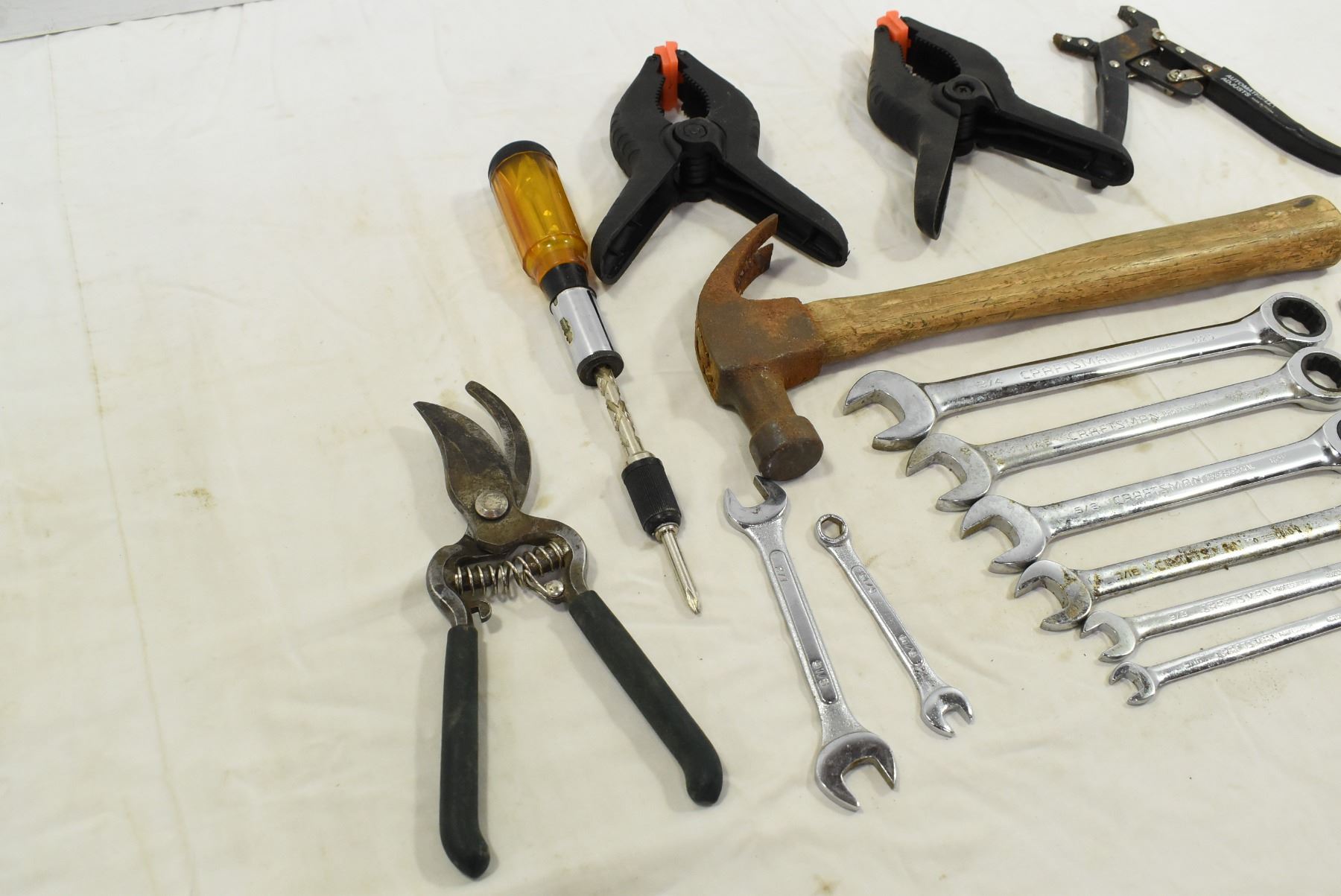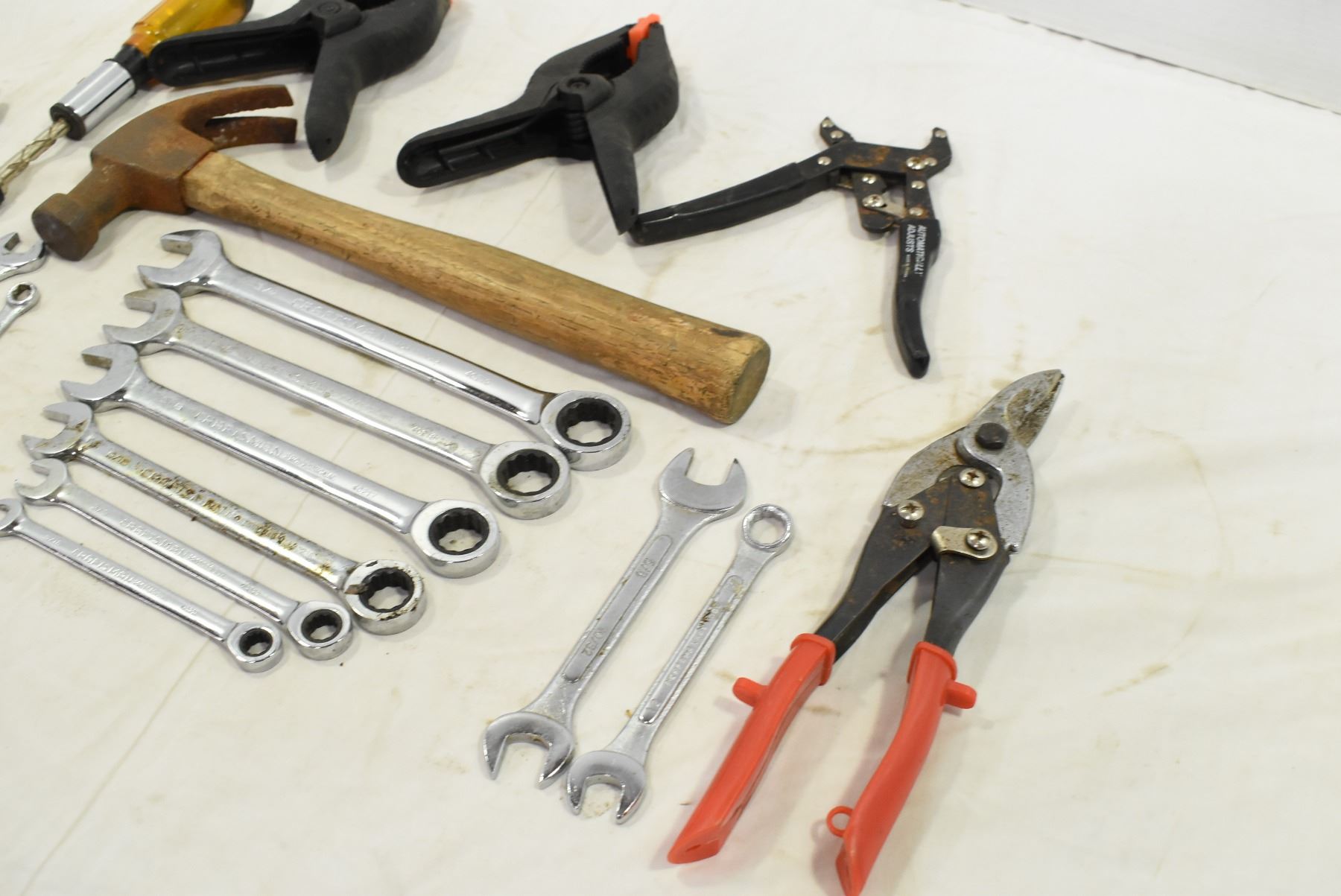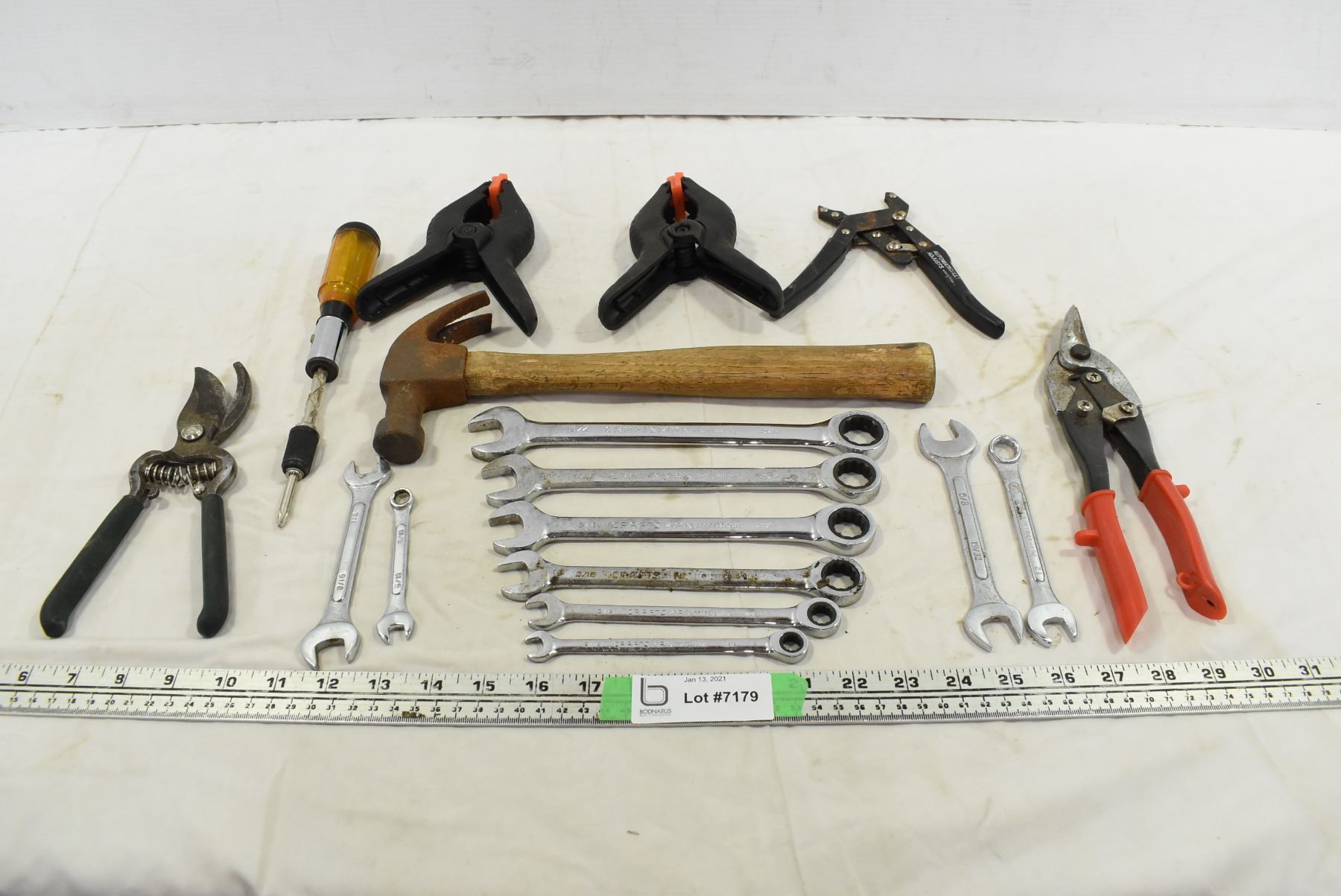 Assorted Hammers, Wrenches, Clamps & Tin Snips