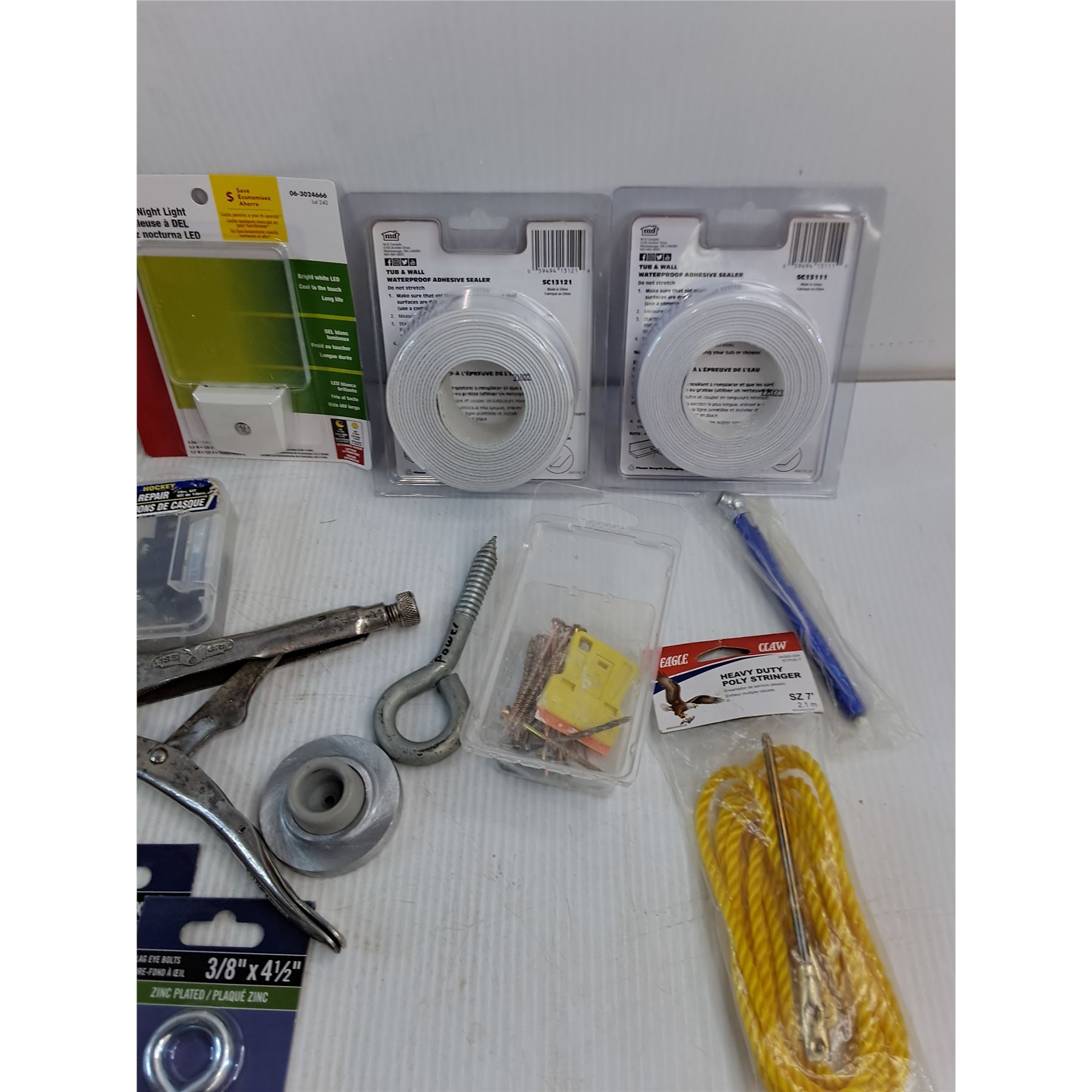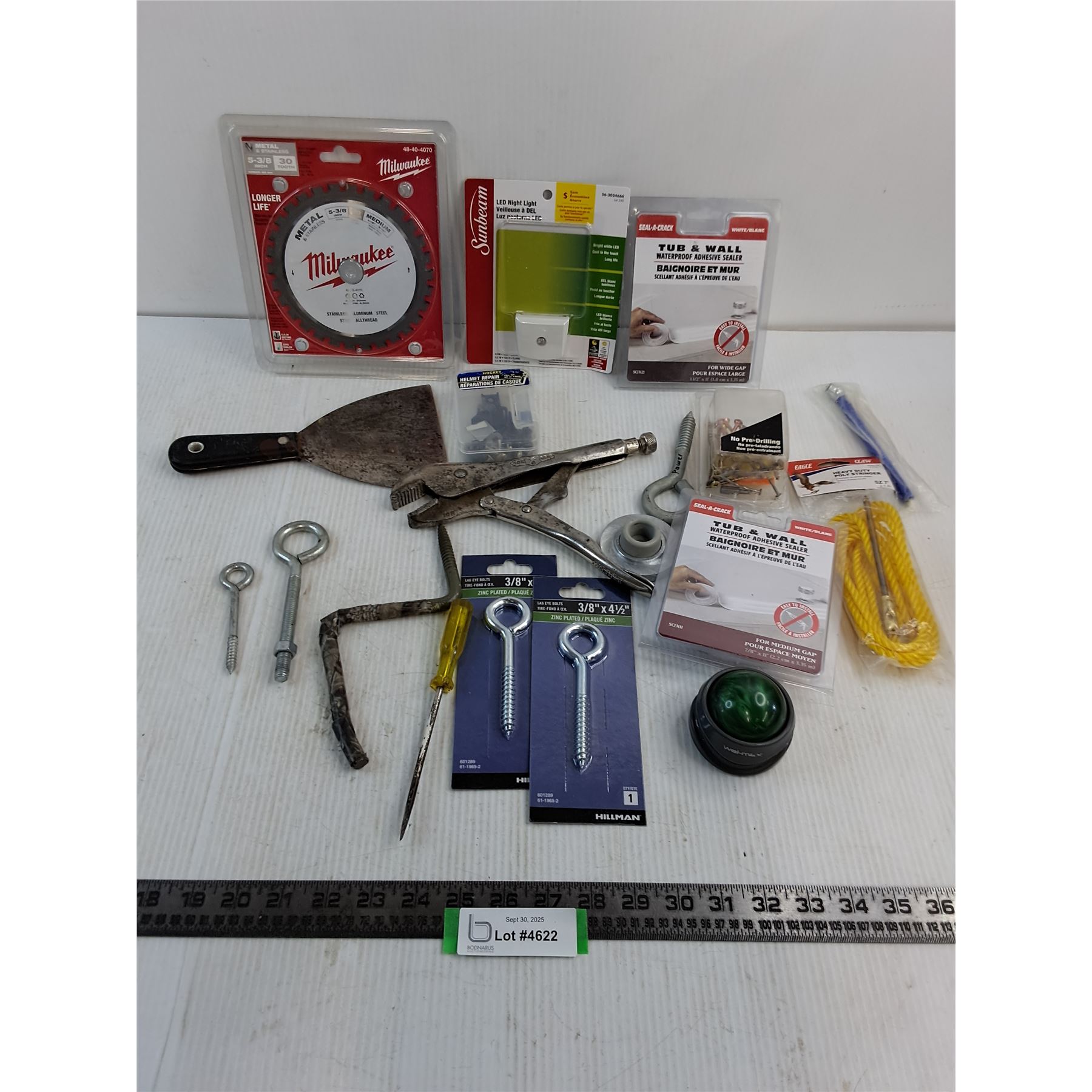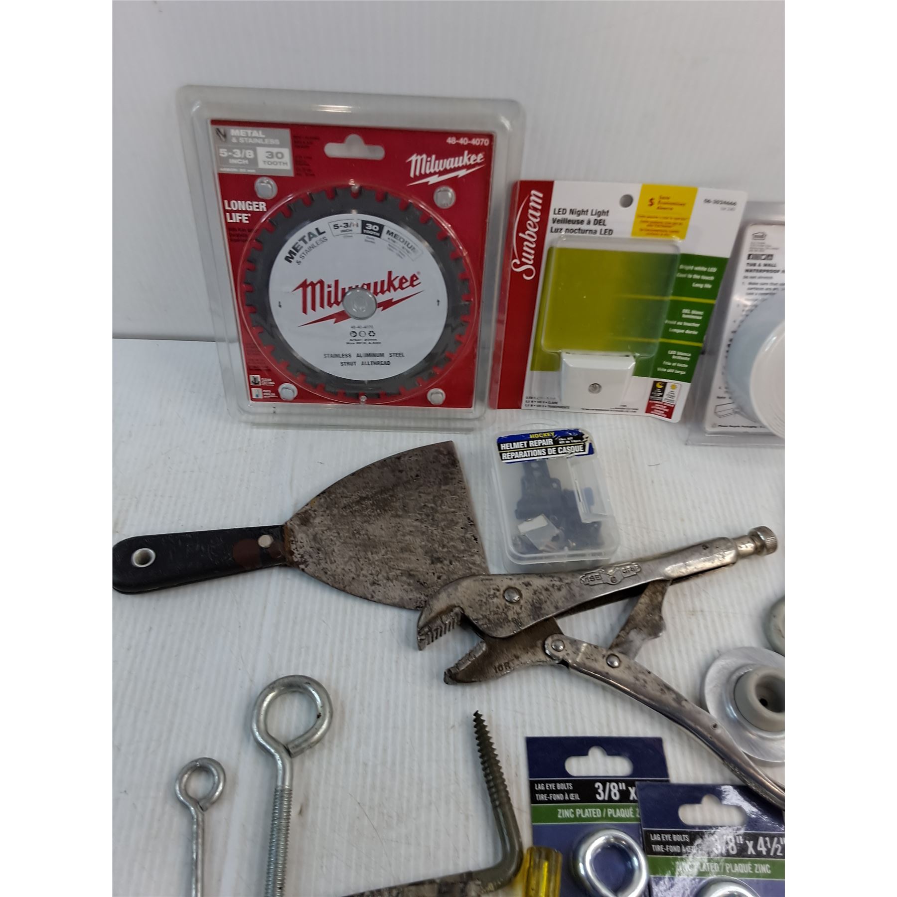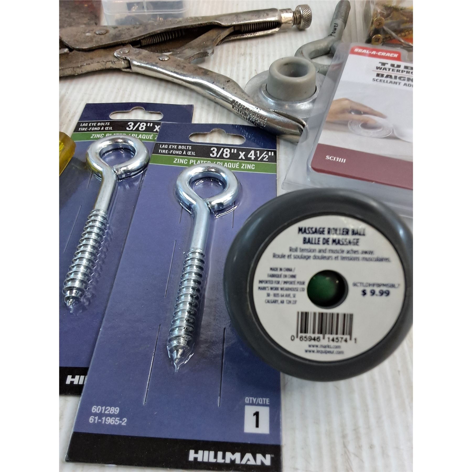Assorted Hand Tools, Bolts, Saw Blade, Massage Ball, Misc.