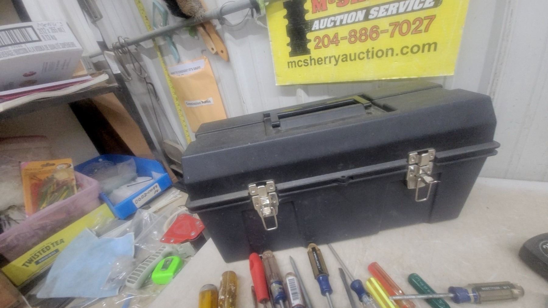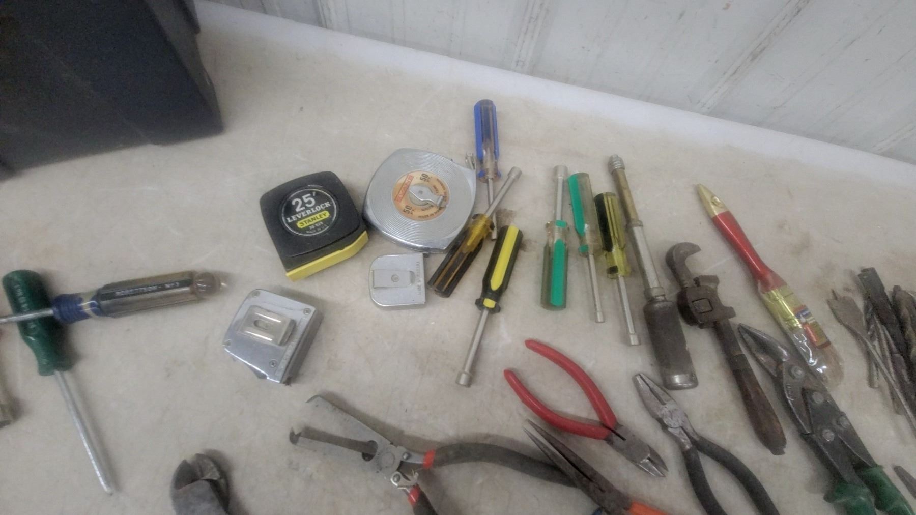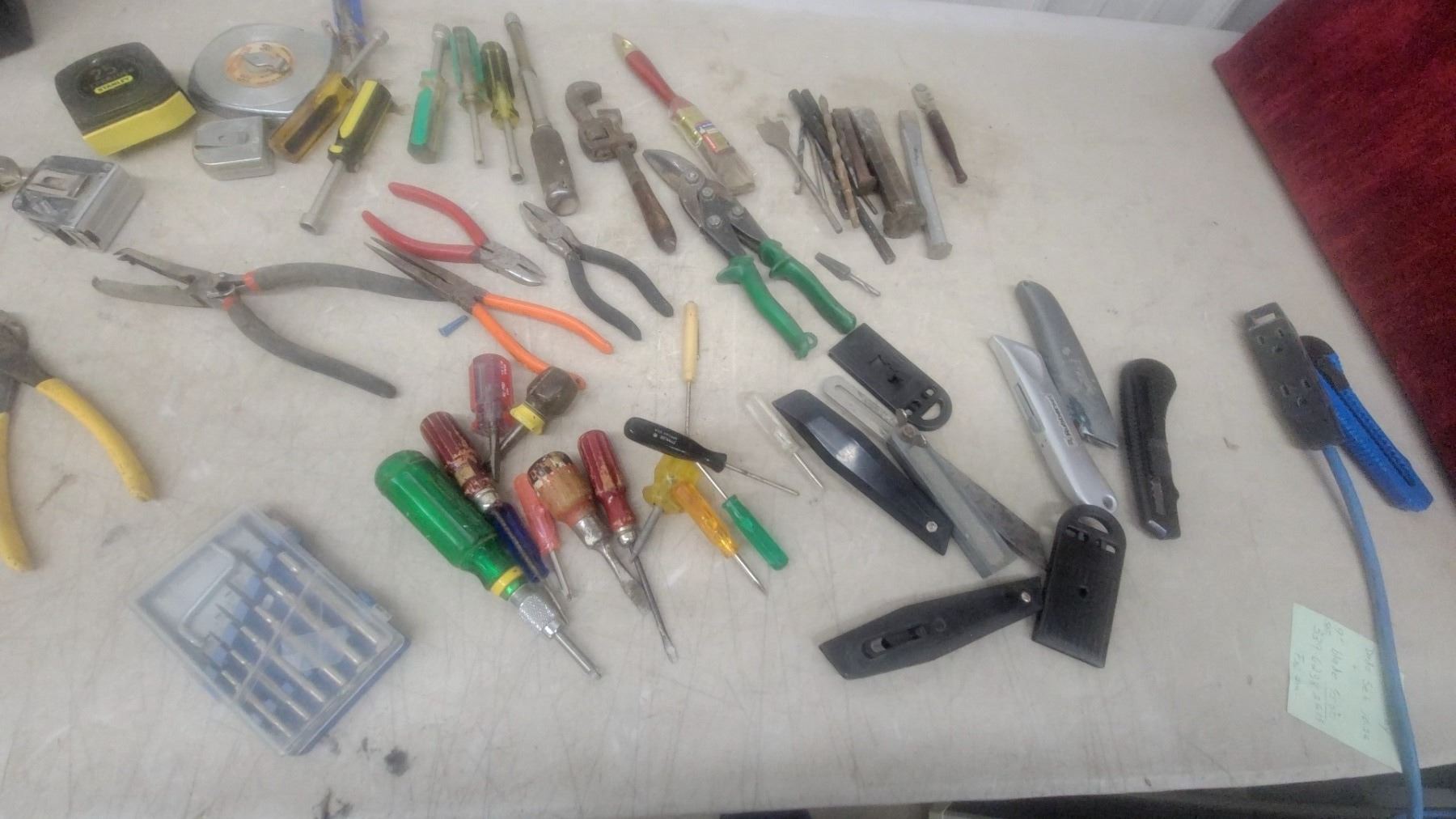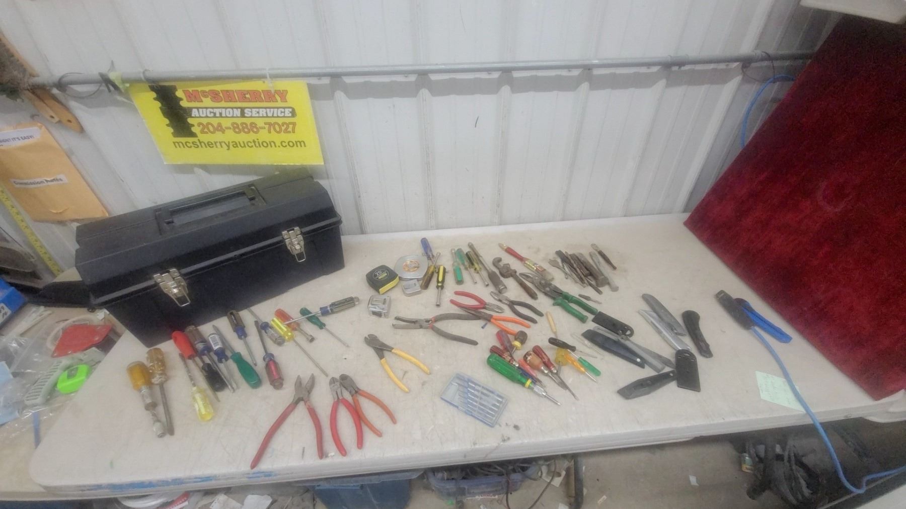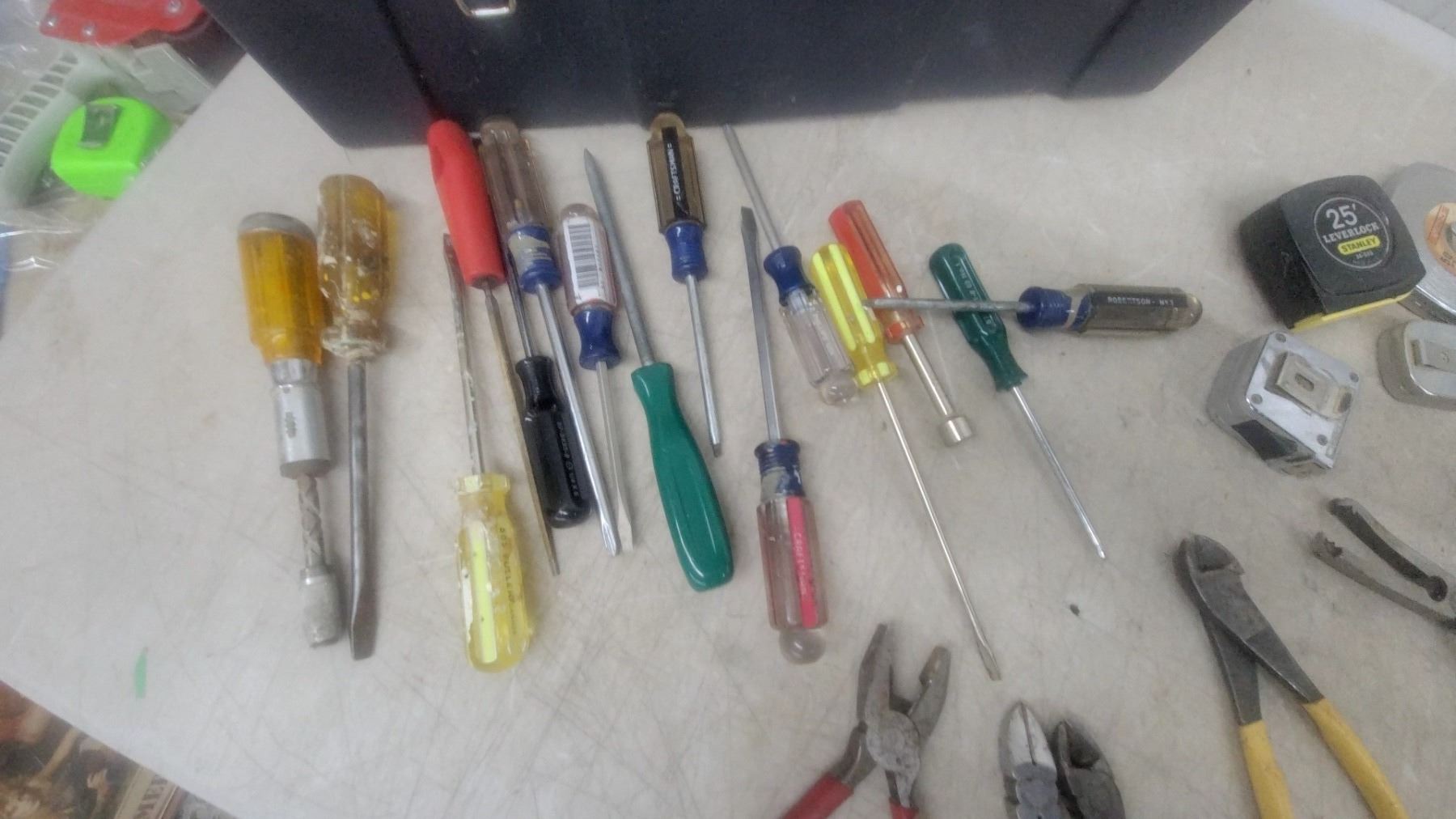 Assorted Hand Tools w/ Toolbox – Screwdrivers, Pliers, Tape Measures, Knives, Precision Bit Set