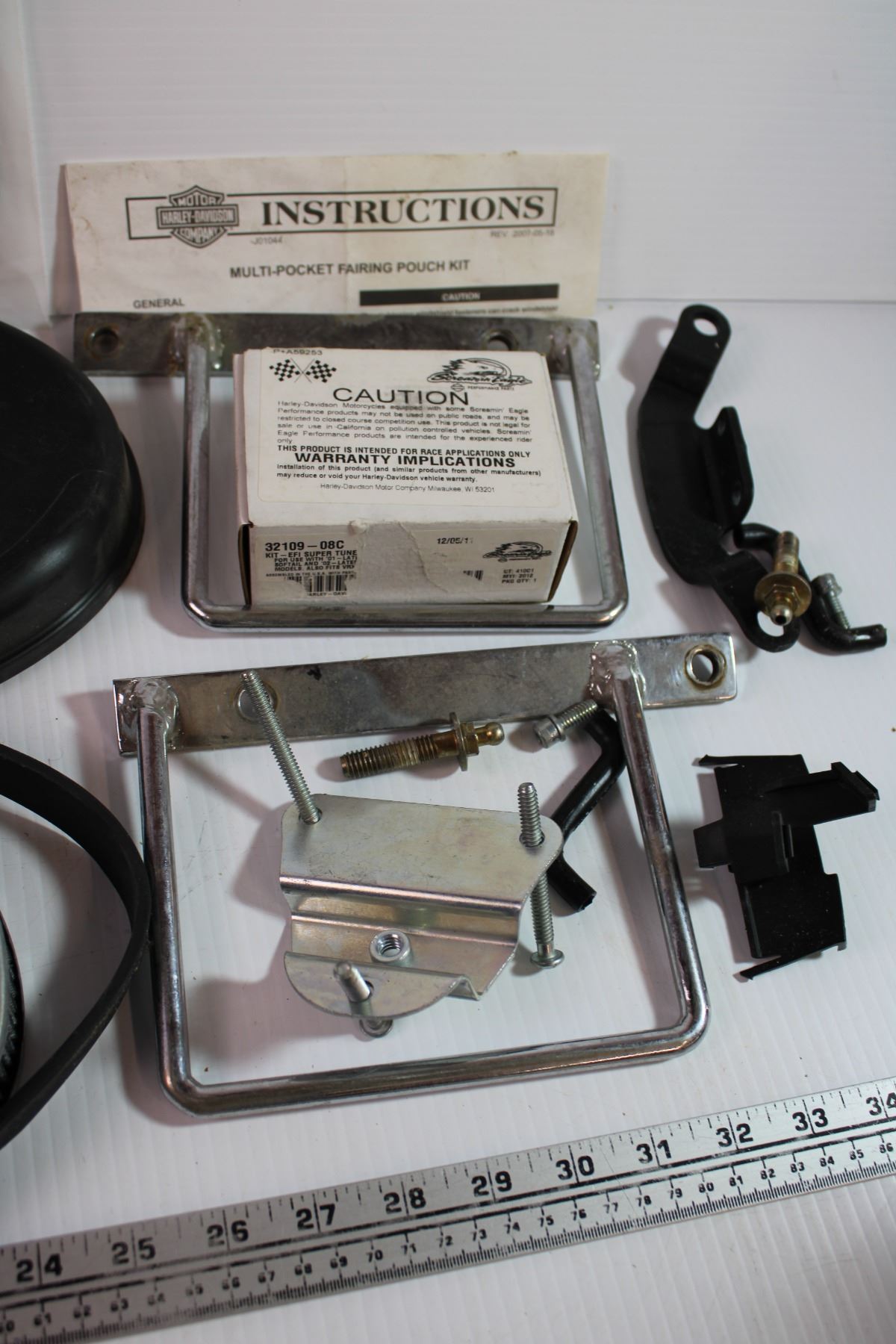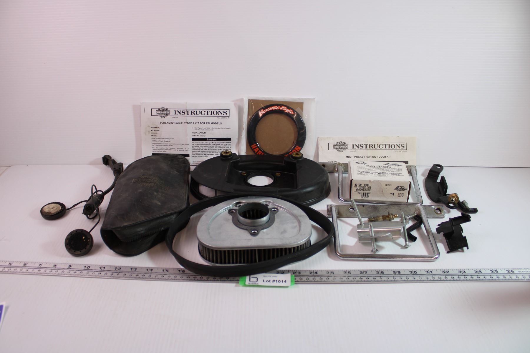 Assorted Harley-Davidson Parts + Leather Pouch w/ Wrenches