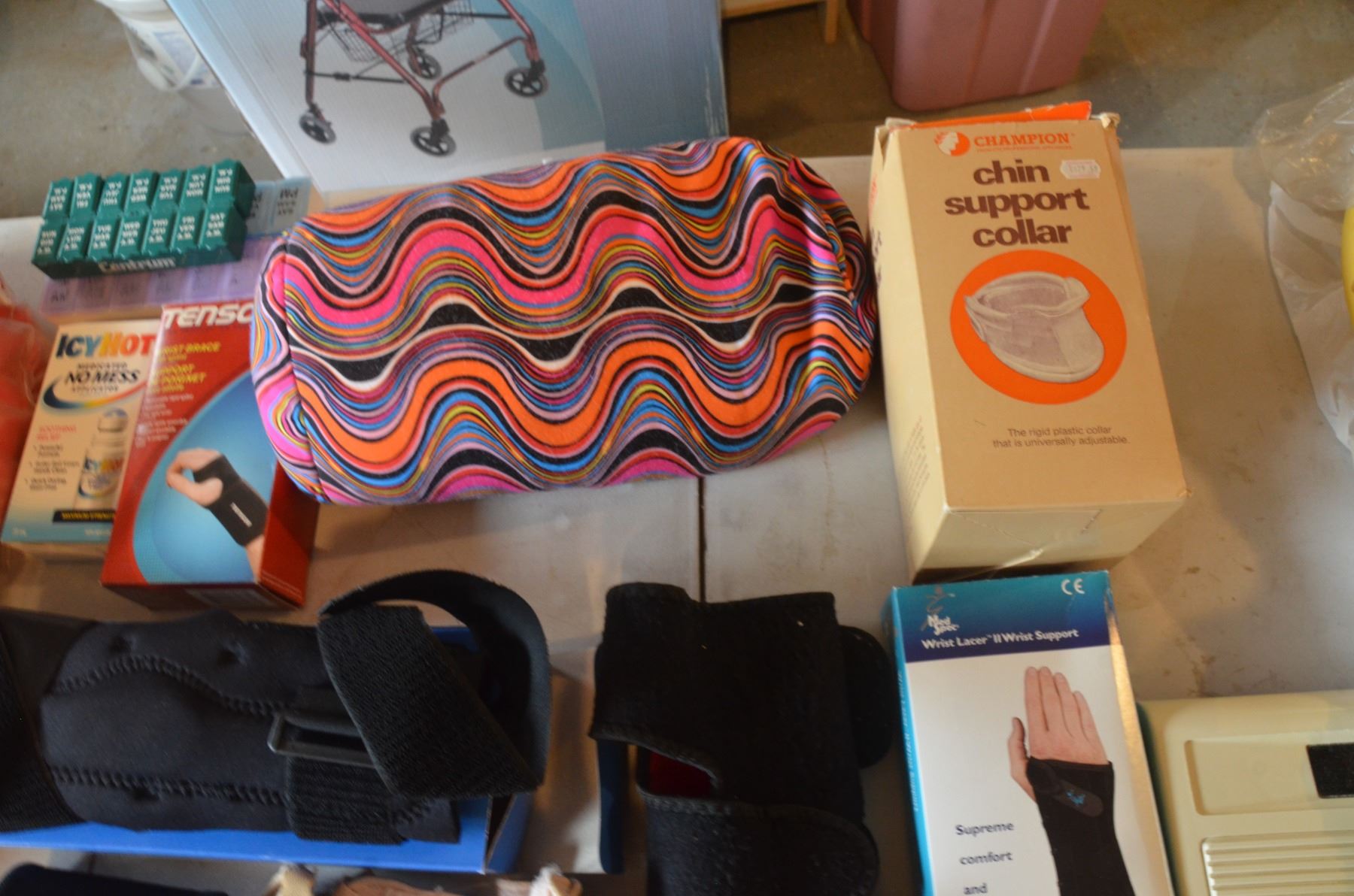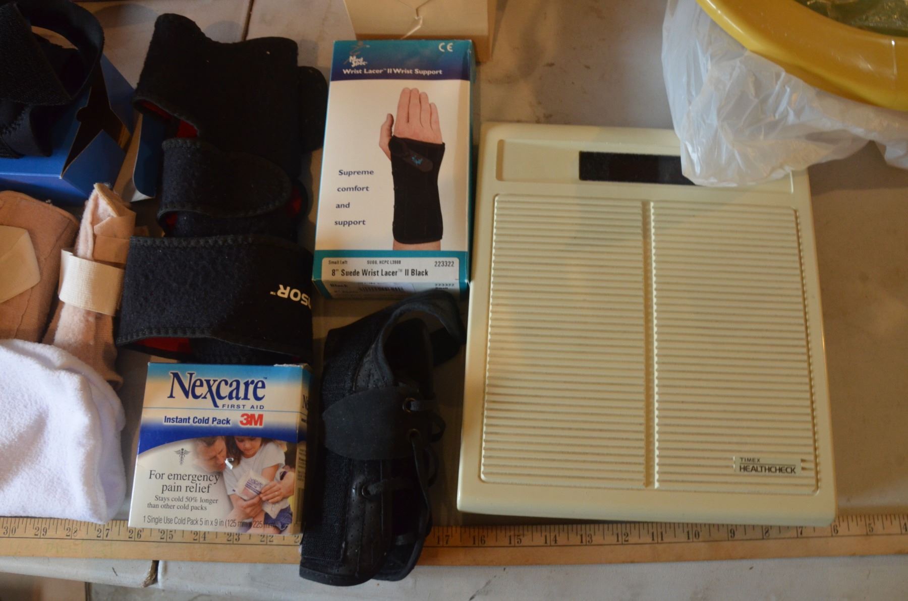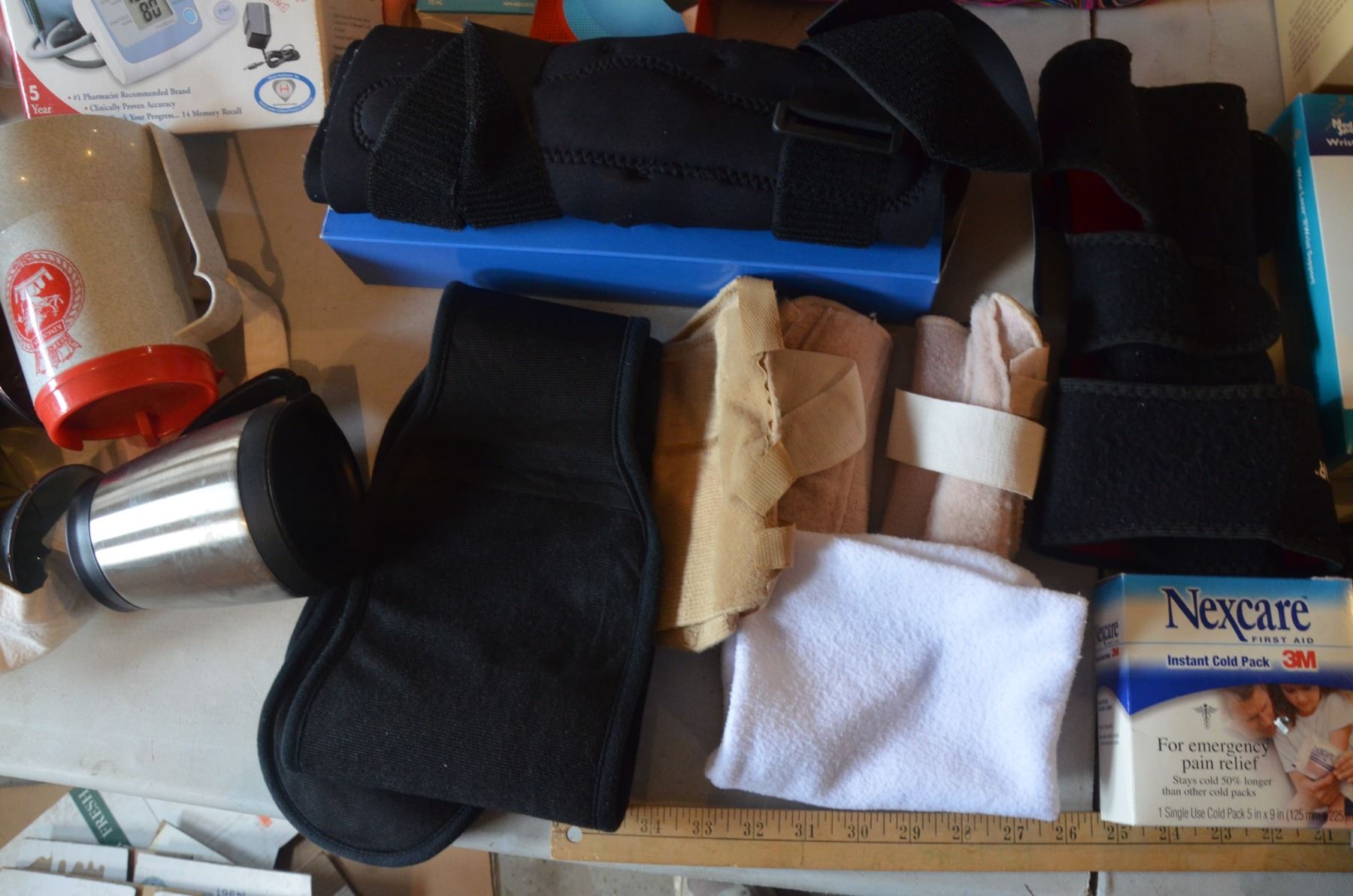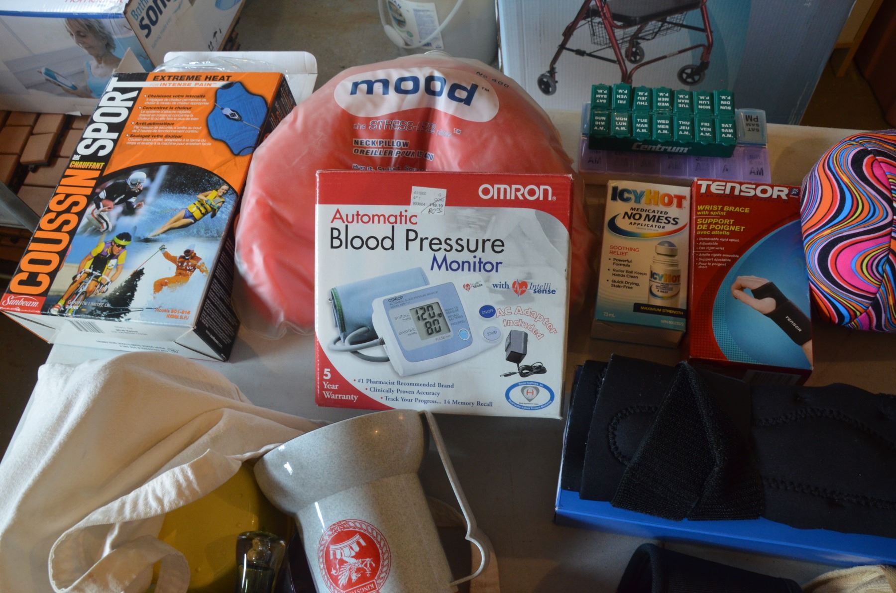 Assorted Health Items- Knee Brace, Wrist Brace, Blood Pressure Monitor, etc.