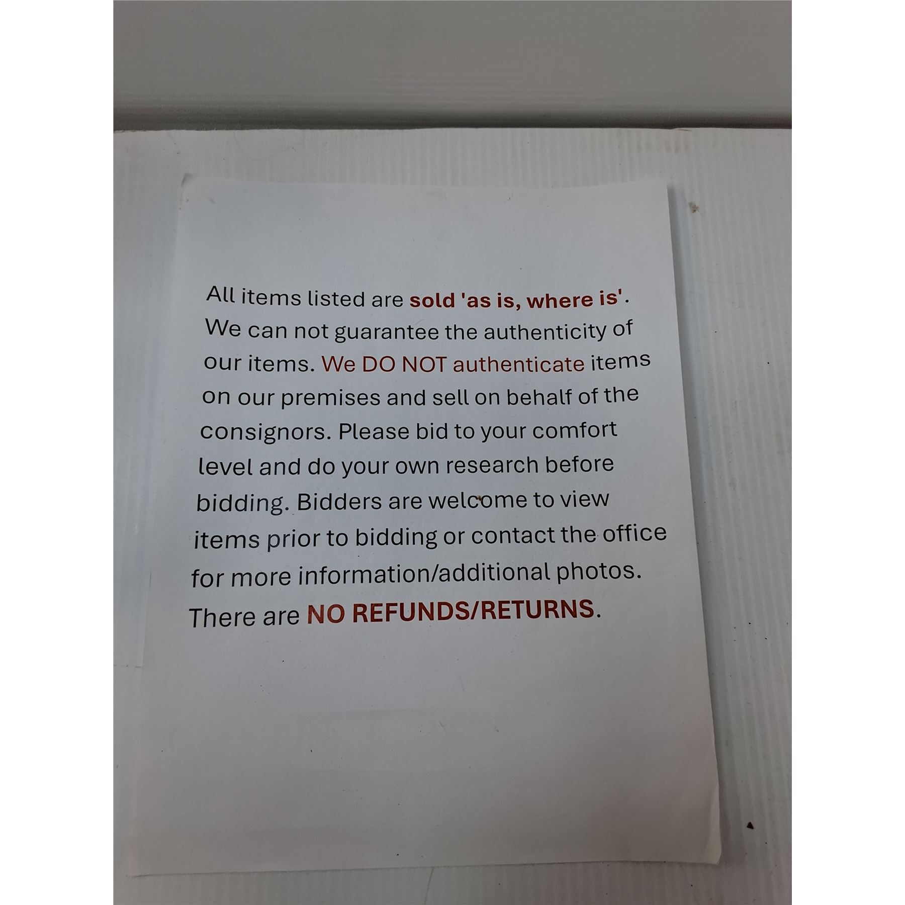 All advertising is a GUIDE ONLY. Buyers must satisfy themselves to the condition, identity and authenticity prior to bidding on an item and shall not make objections after the sale.