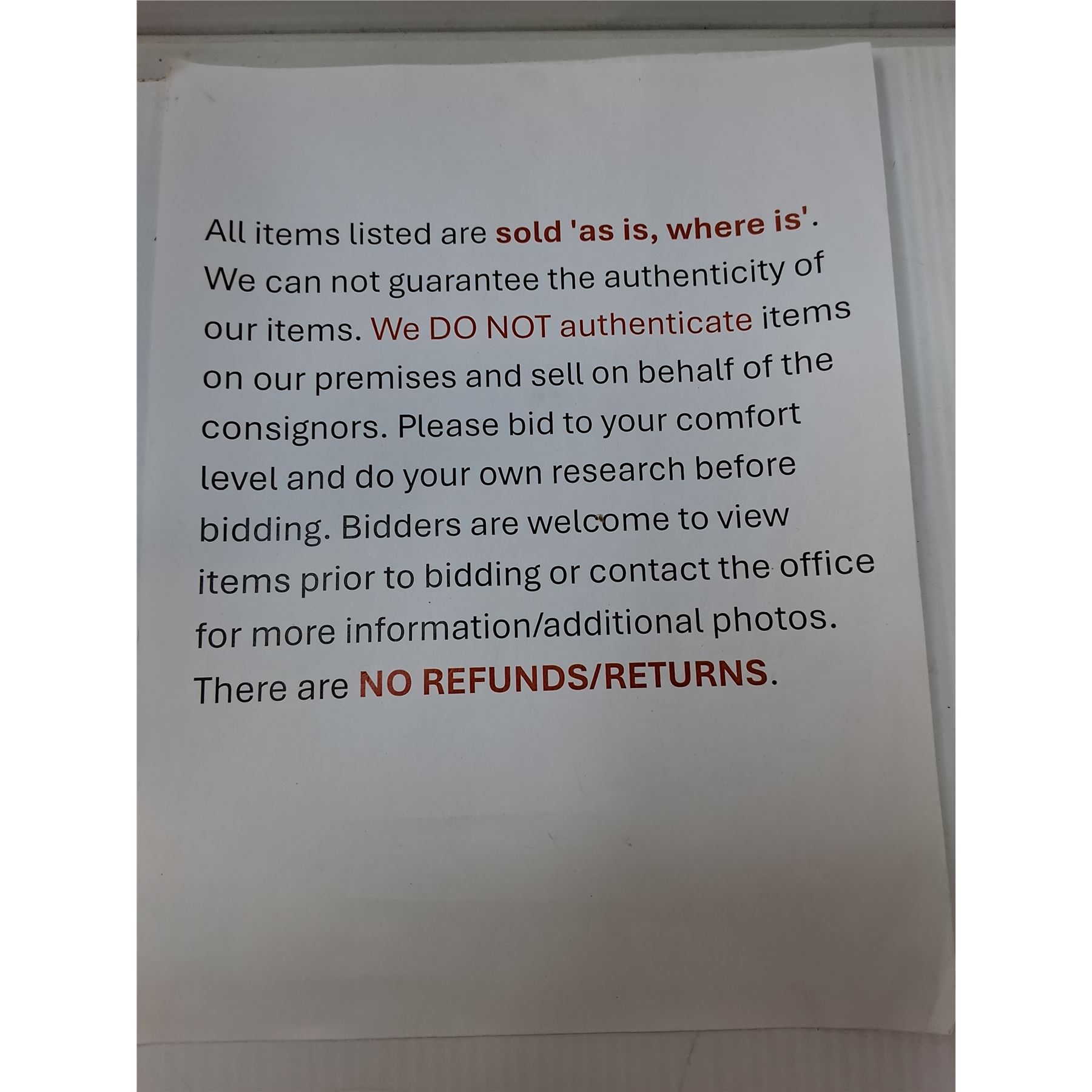 All advertising is a GUIDE ONLY. Buyers must satisfy themselves to the condition, identity and authenticity prior to bidding on an item and shall not make objections after the sale.