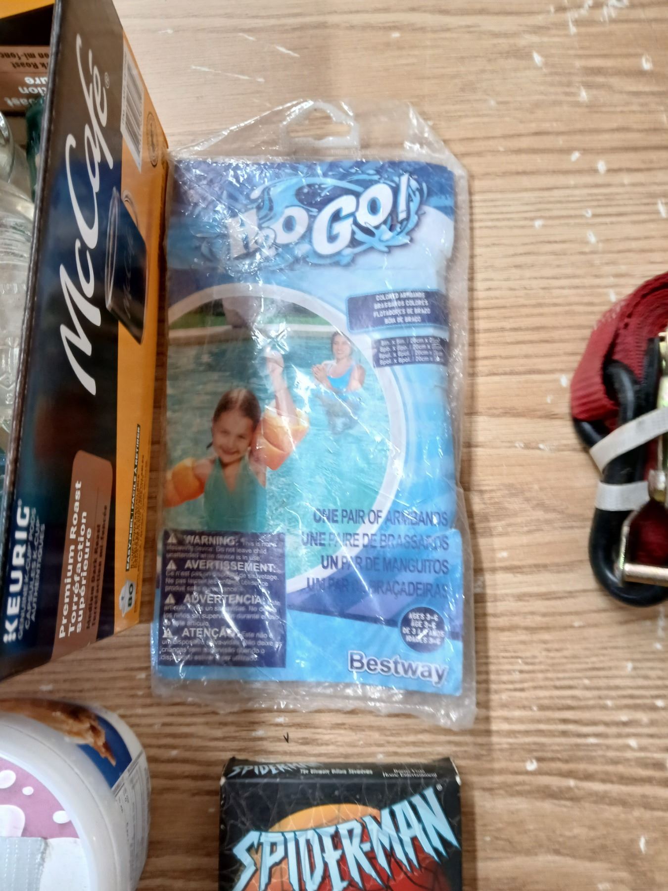 Assorted Home Goods- SpiderMan on VHS, Kids Floaties and ETC