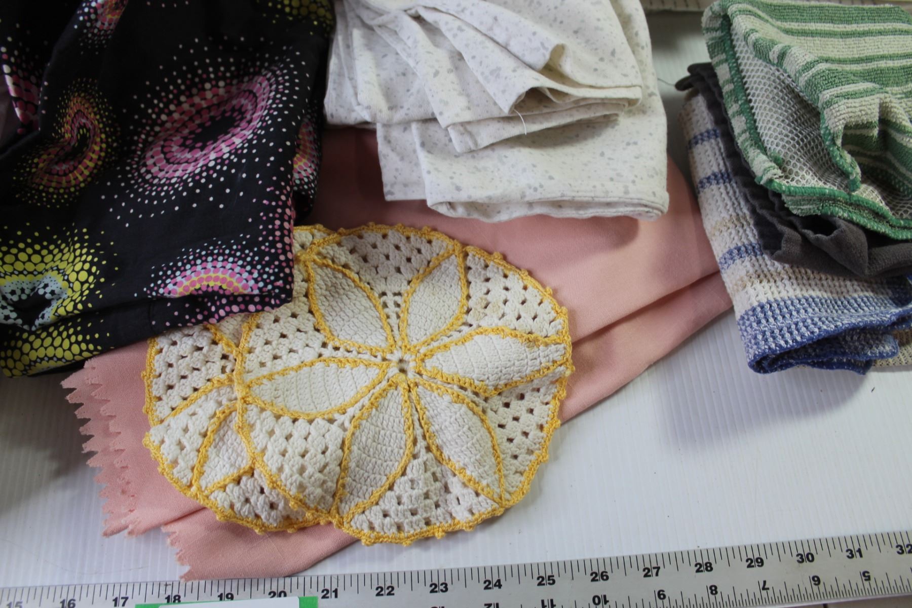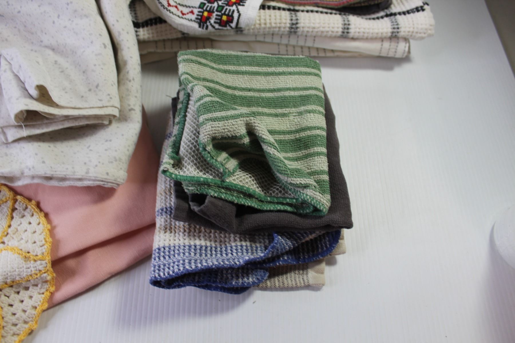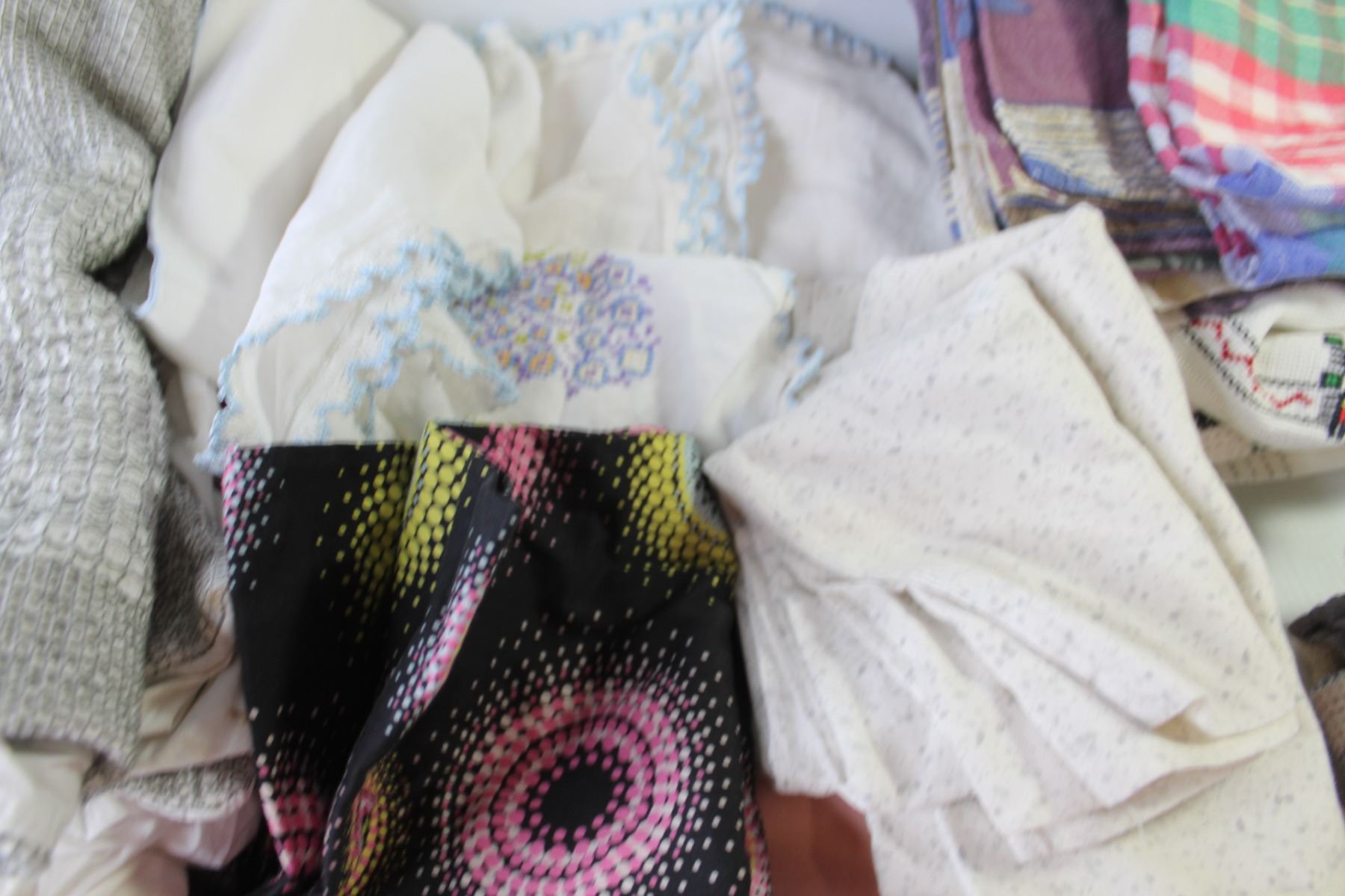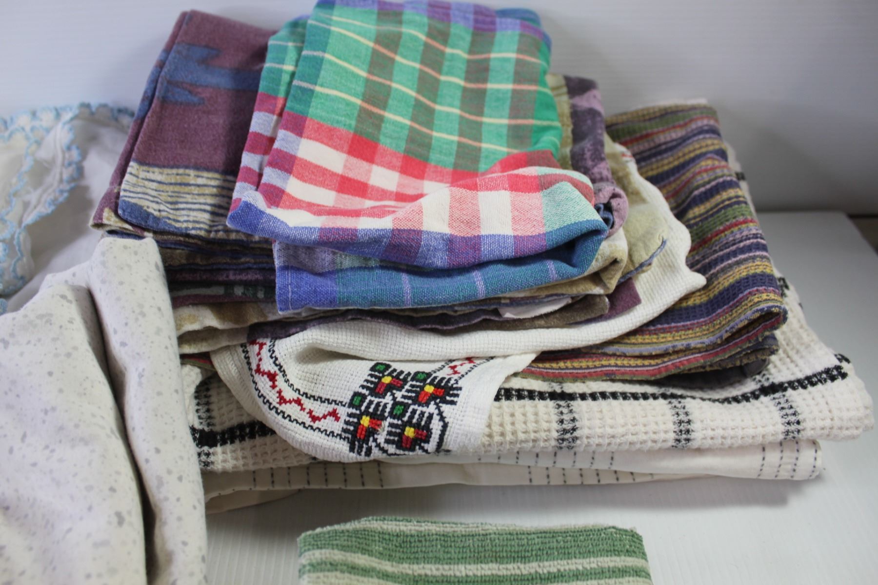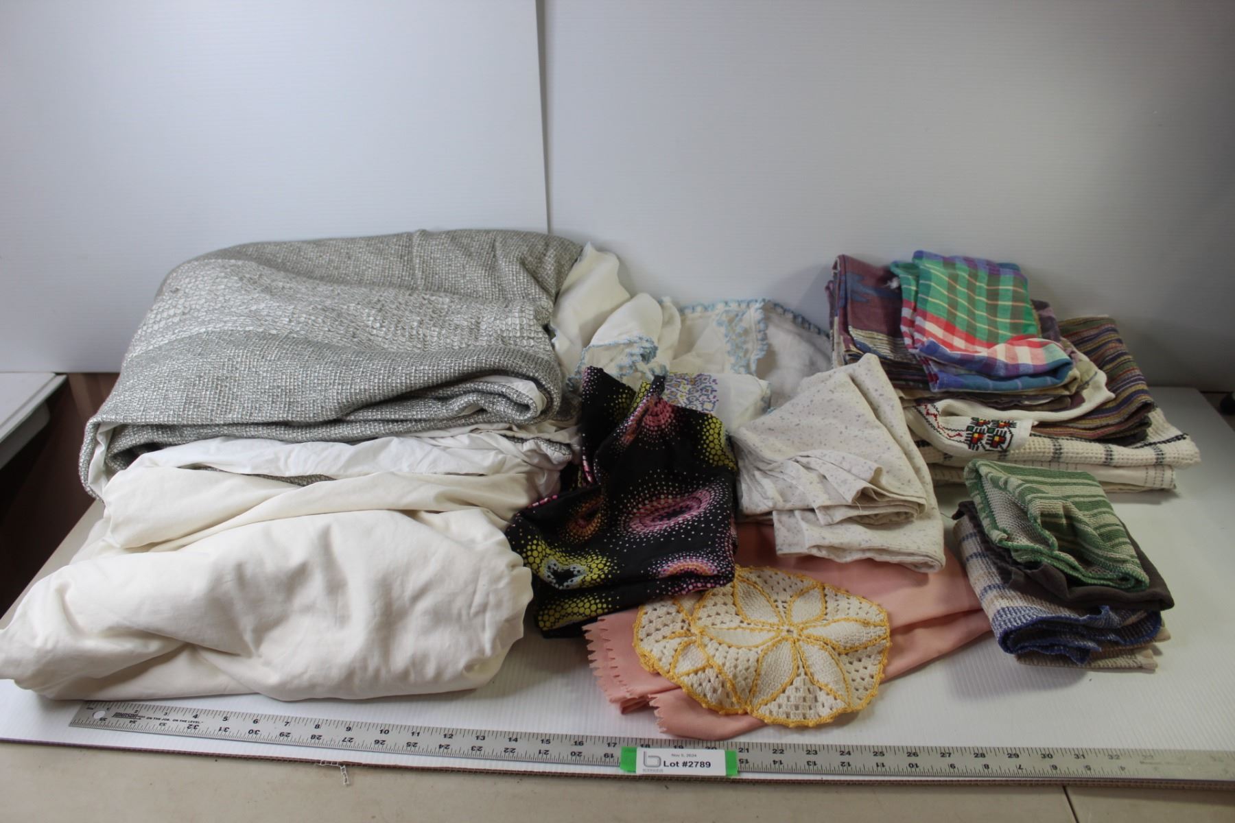 Assorted Home Linens (Comforter, Sheets, Table Cloths, Dish Cloths, Tea Towels, Table Runners, Doilies, Pillow Shams)