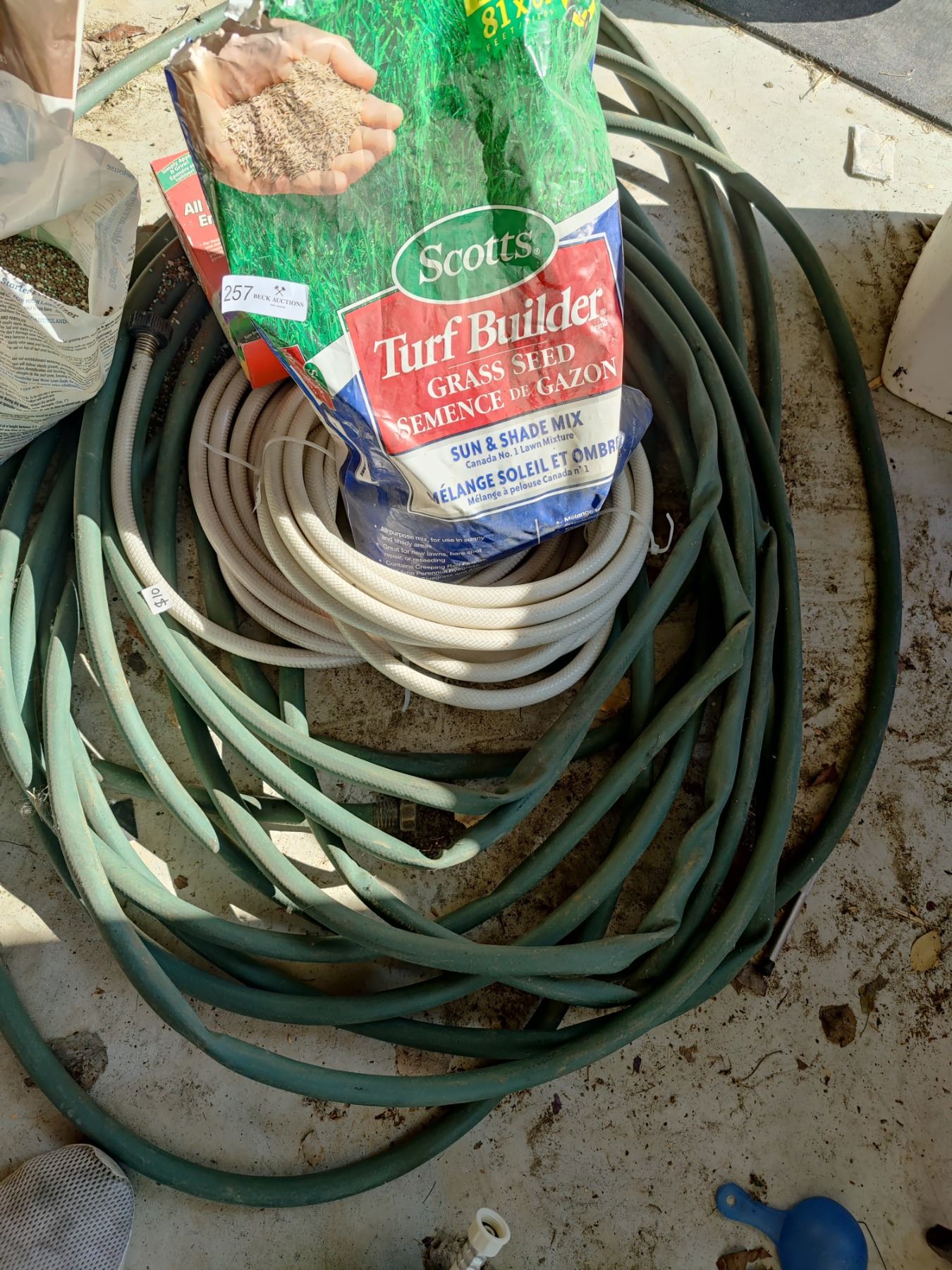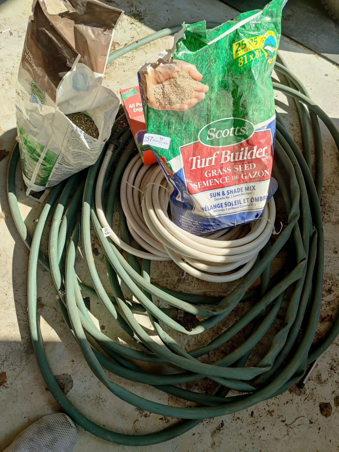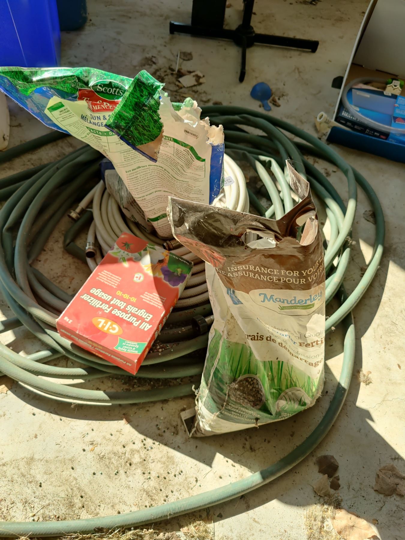 Assorted Hoses and Lawn Fertilizers