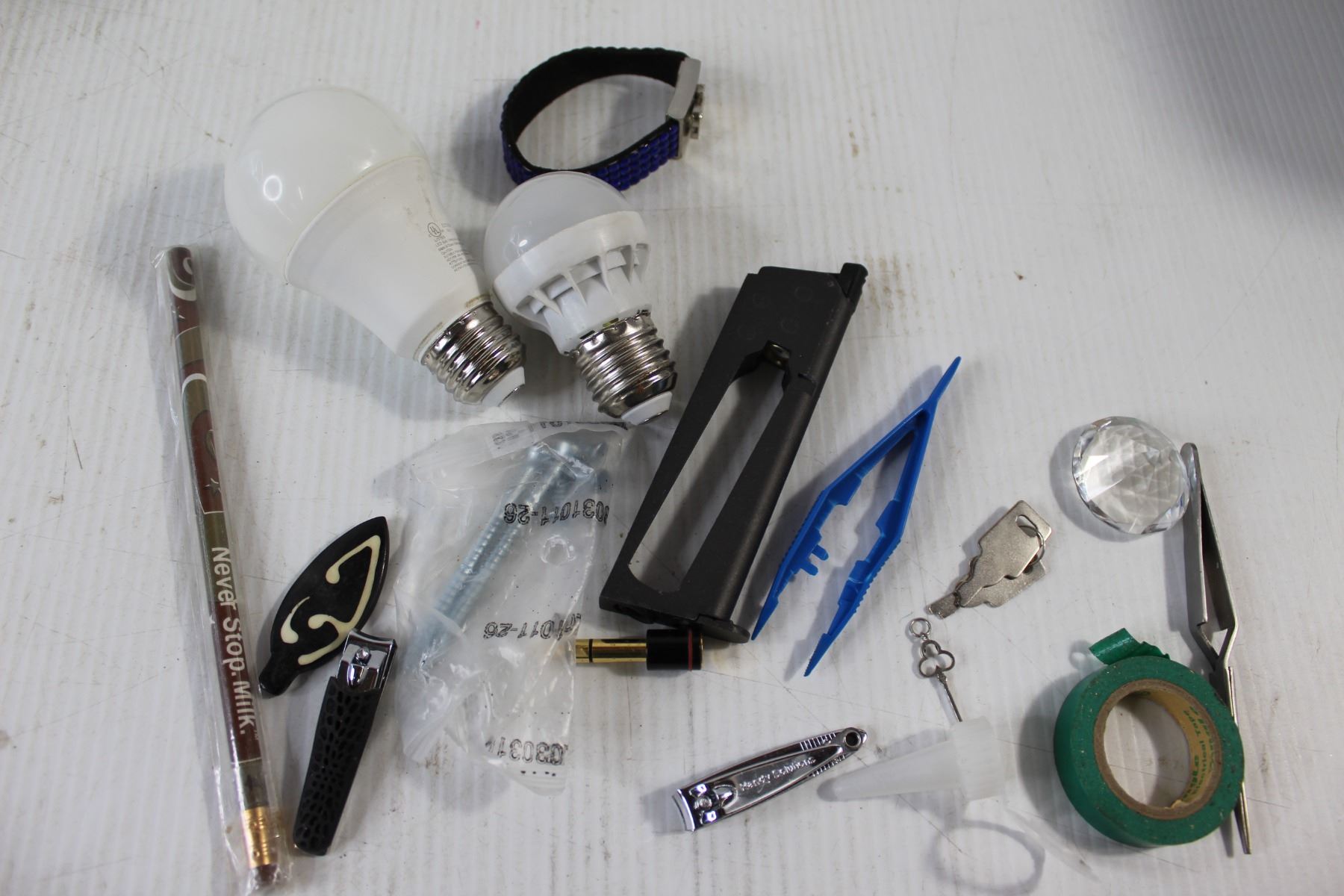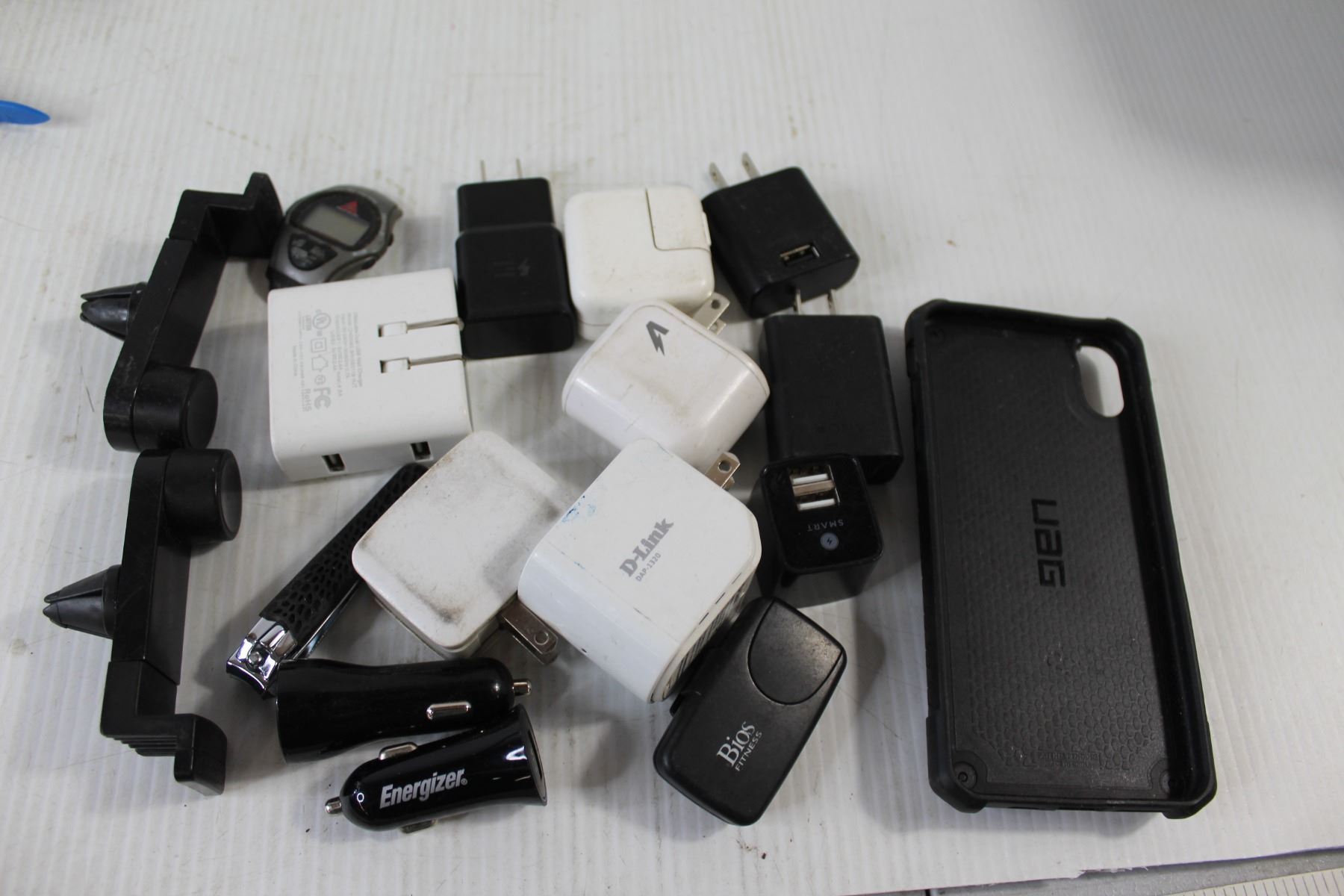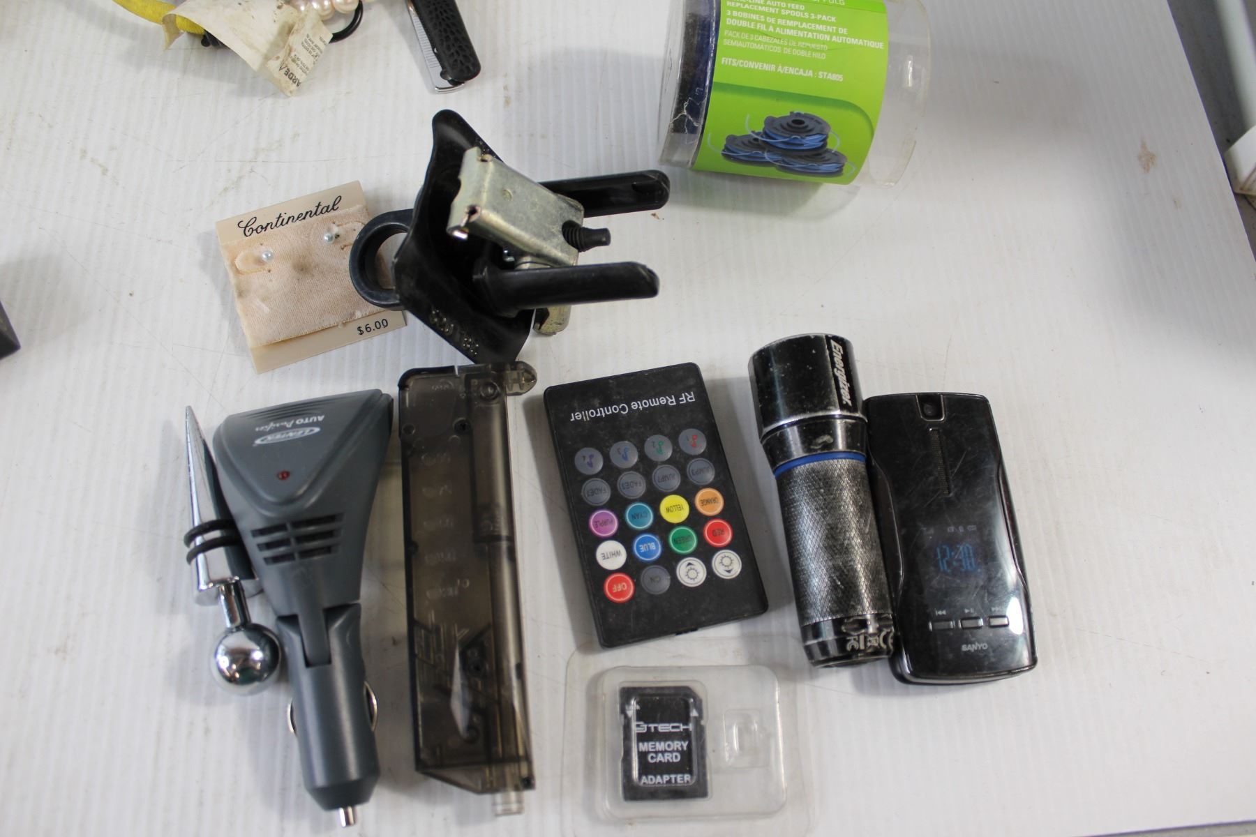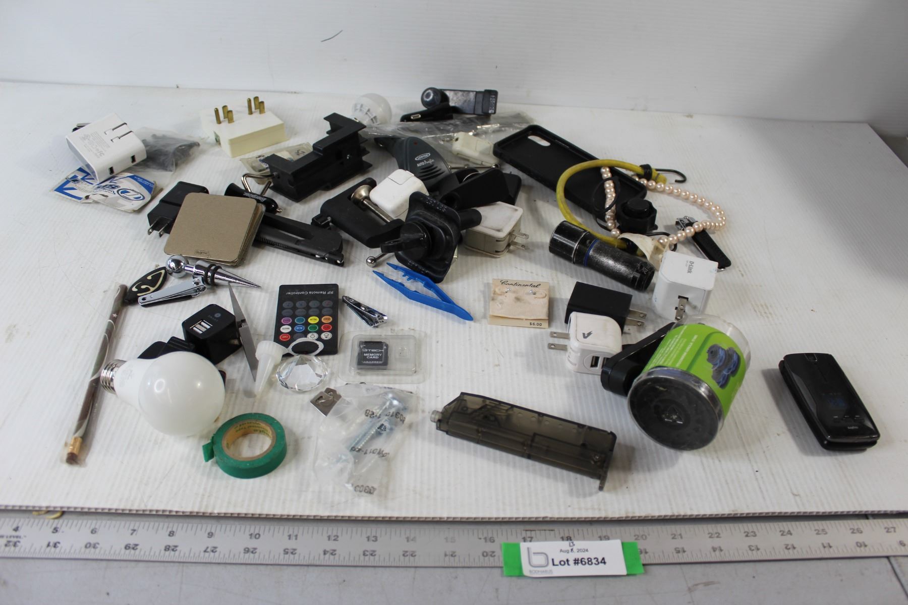Assorted House and Car Outlet Blocks, Energizer Flashlight - Untested, Phone Case, Light Bulbs, Gree