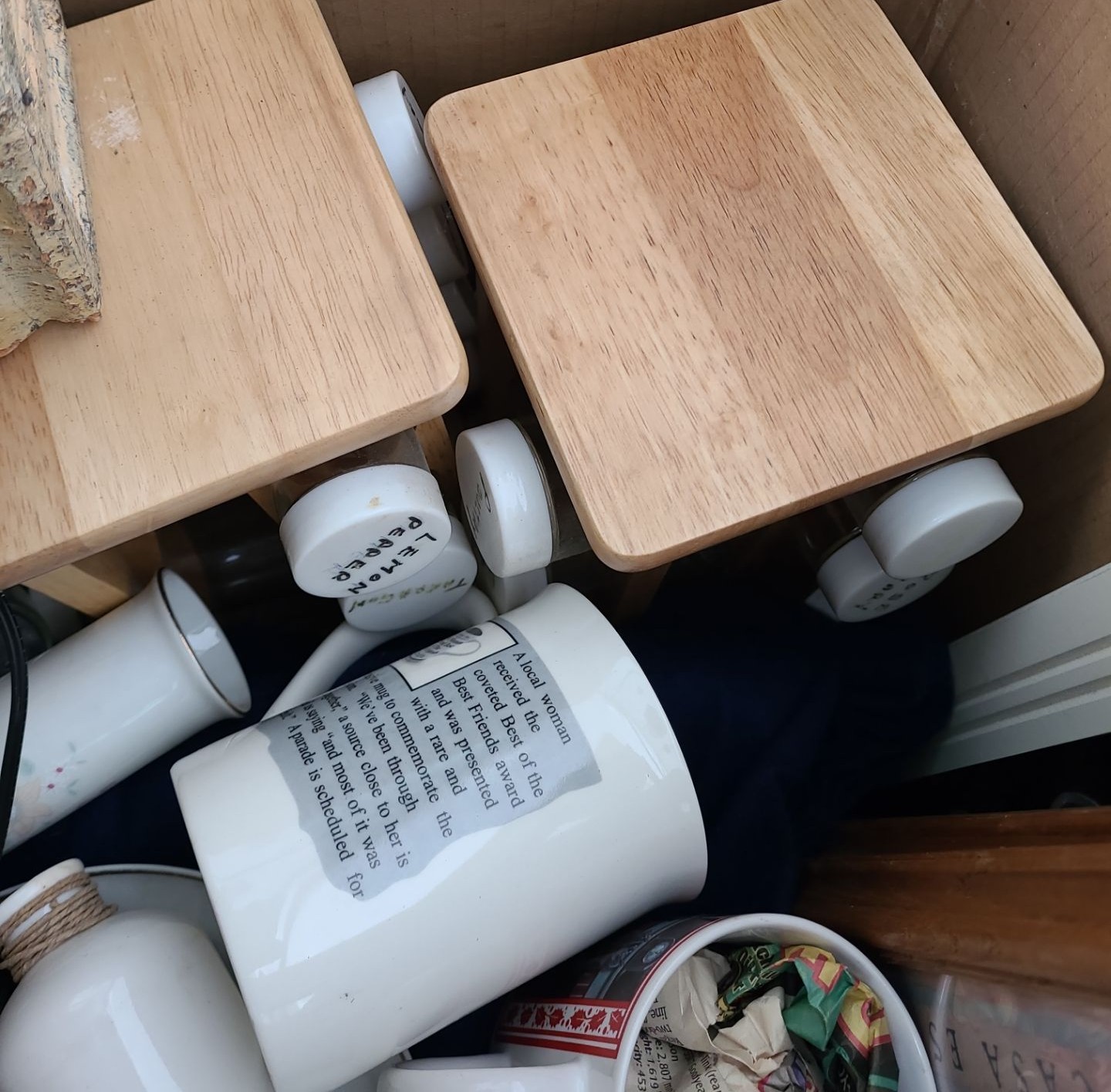 Assorted Household Items Including: Candleholders, Spice Racks, Mugs, Wooden Family Sign 20 X 5.5