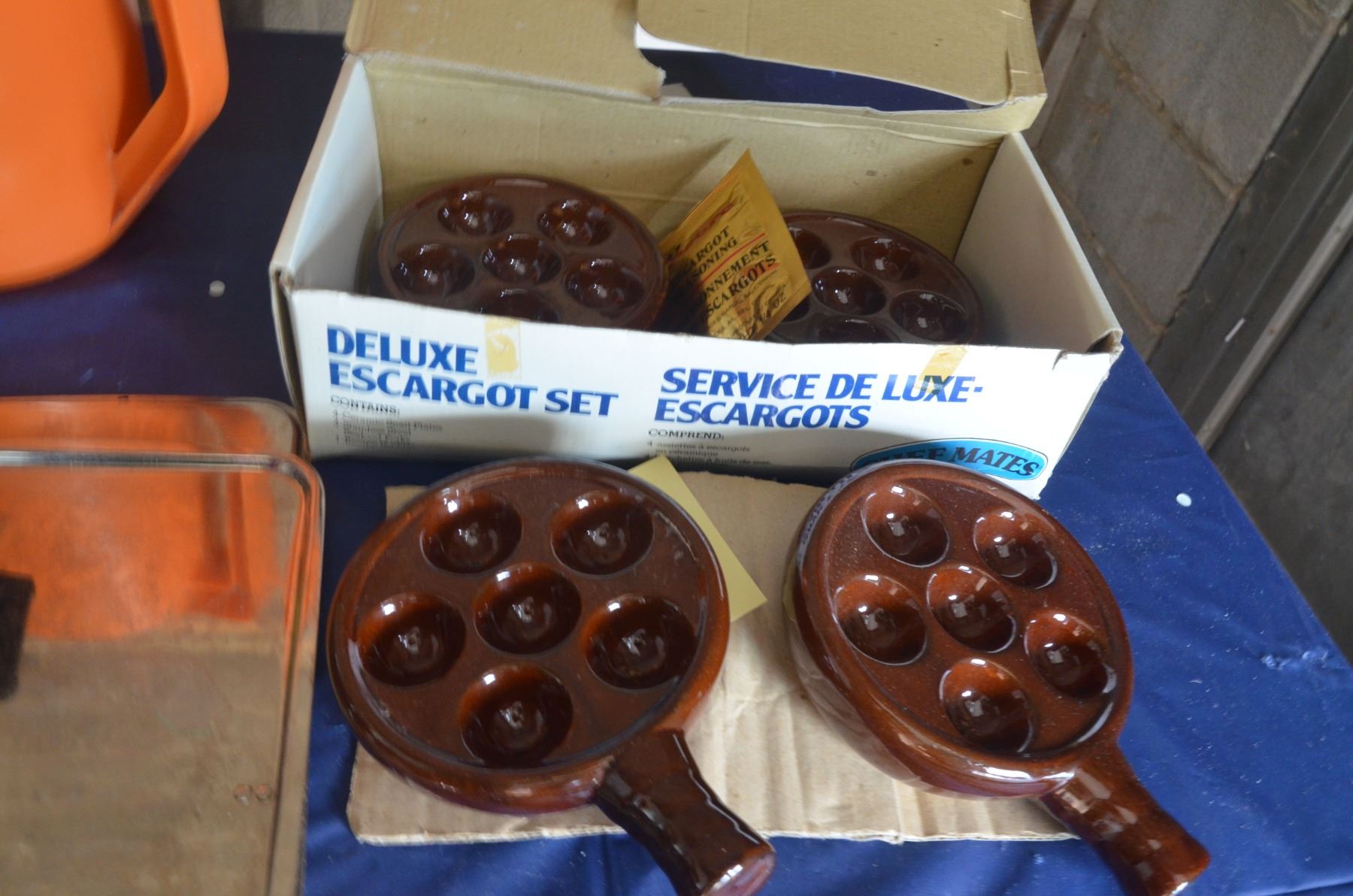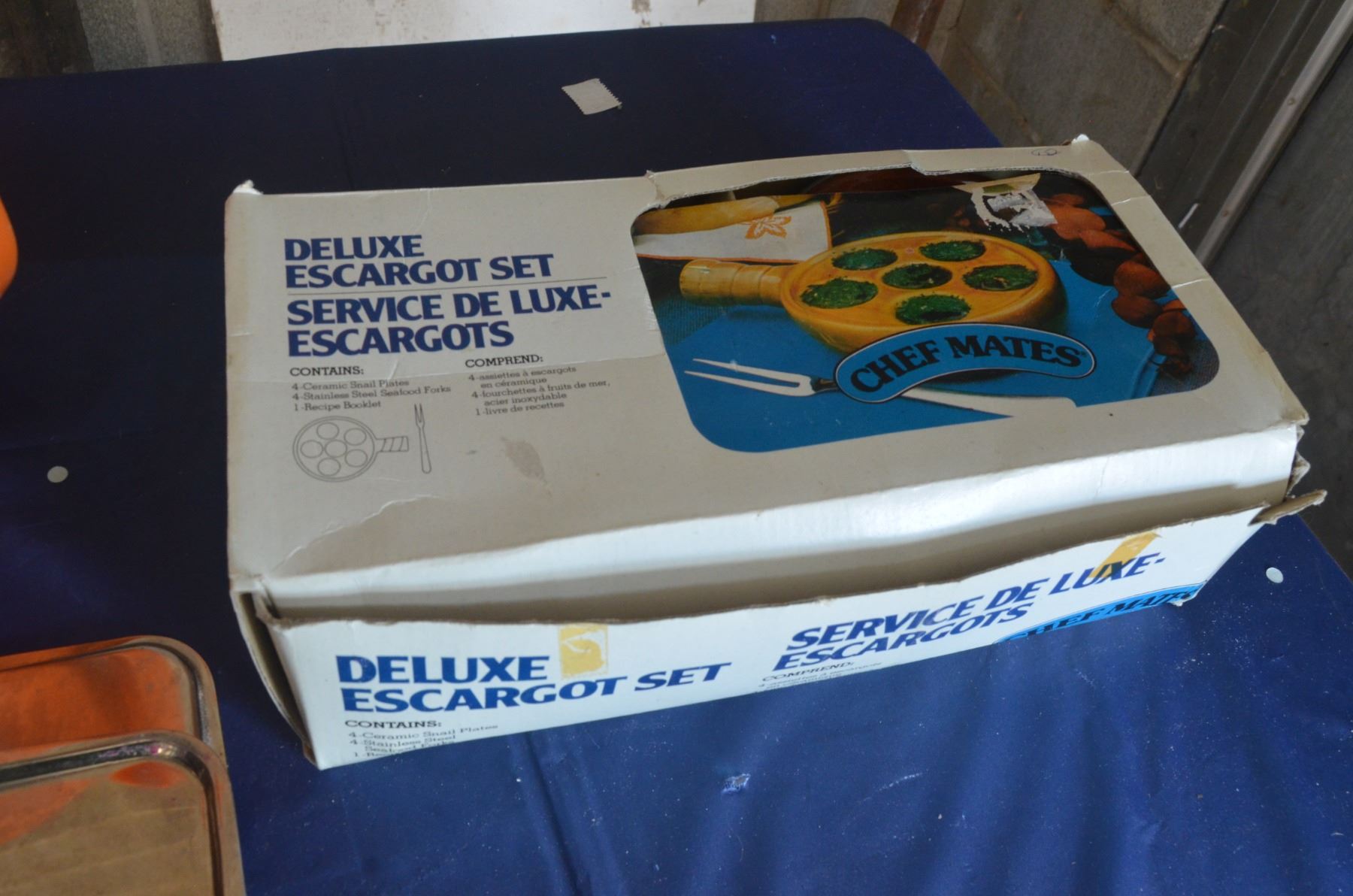 Assorted Household Kitchen Items, Waffle Iron, Deluxe Escargot Set