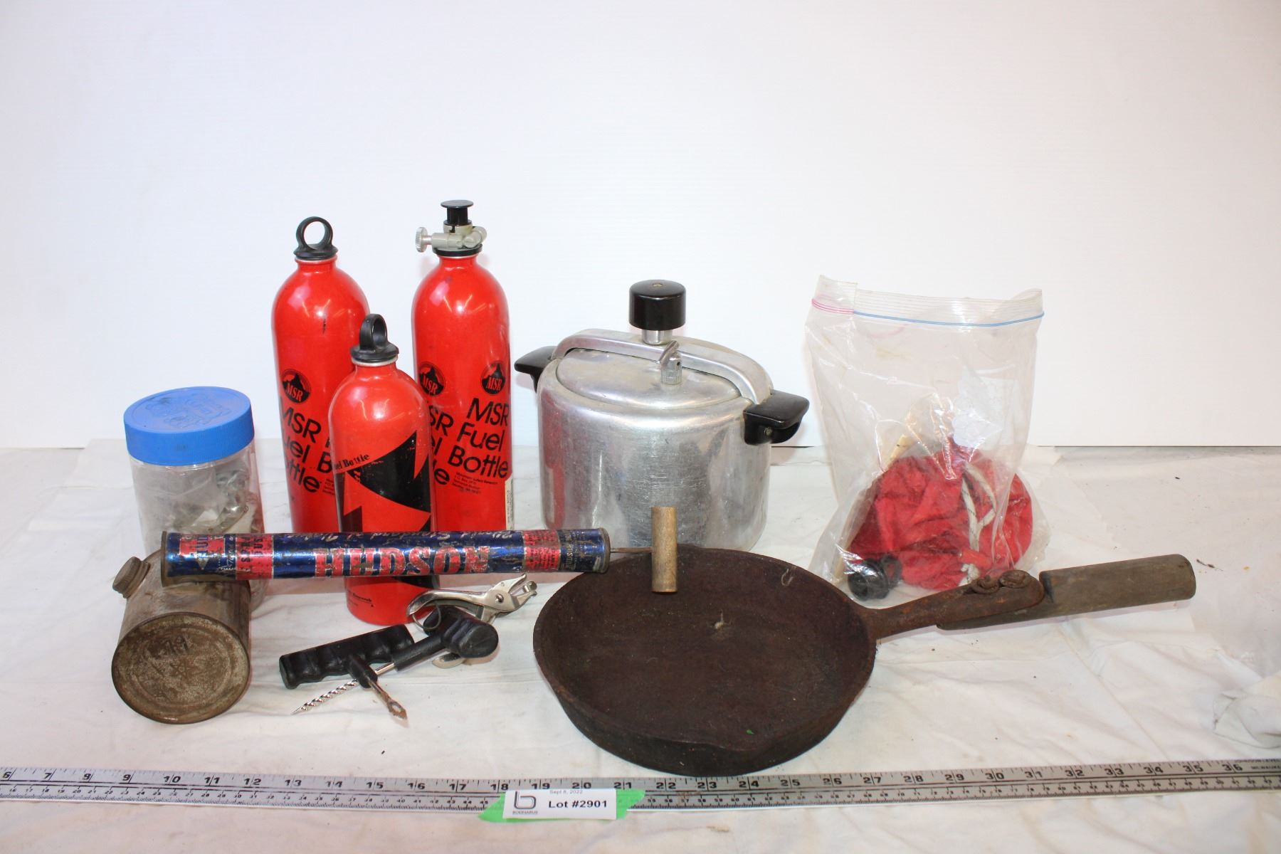 Assorted Items (MSR Fuel Bottles, Bug Sprayer, Pan)
